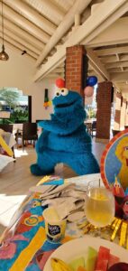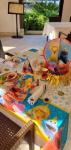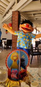 One of the extra special things you can do at Beaches Negril is a Character breakfast with Sesame Street friends. The restaurant is all decked out and there a few different packages to choose from. The basic includes sesame street tableware, plastic cup with crazy straw, whistle and of course a delicious breakfast! While you can see the characters around the resort sometimes this is a much more intimate experience and ensures your kiddos will see them! (we went during covid and characters distanced 6 feet from us)