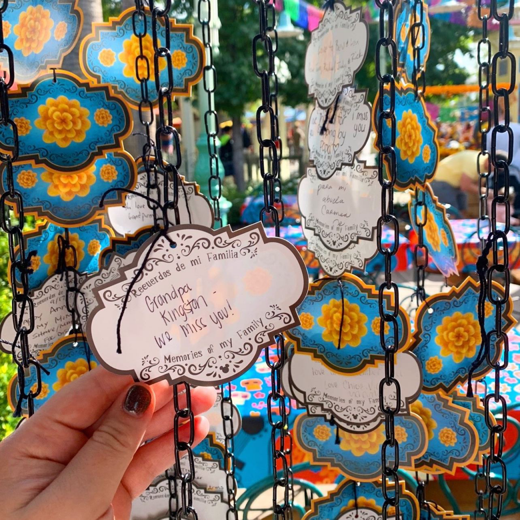 Halloween at Disney Parks is my favorite time of year to go! It truly is "Happy" Halloween instead of just creepy and sometimes yucky! I was hesitant for the longest time to watch Coco but it actually is one of my favorites now! During this festive season at Disney's California Adventure park they set up Plaza de la Familia just like in the movie! It is free to take part in and so much fun to learn about "day of the dead" or "Dia de los Muertos"