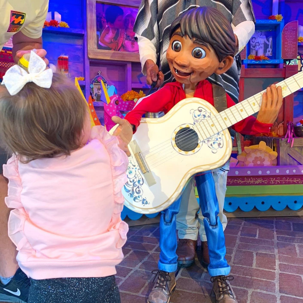 1. Meet Miguel! While you may not actually get to have a conversation with him, your kiddos will love being face to face with a character that is actually their size!