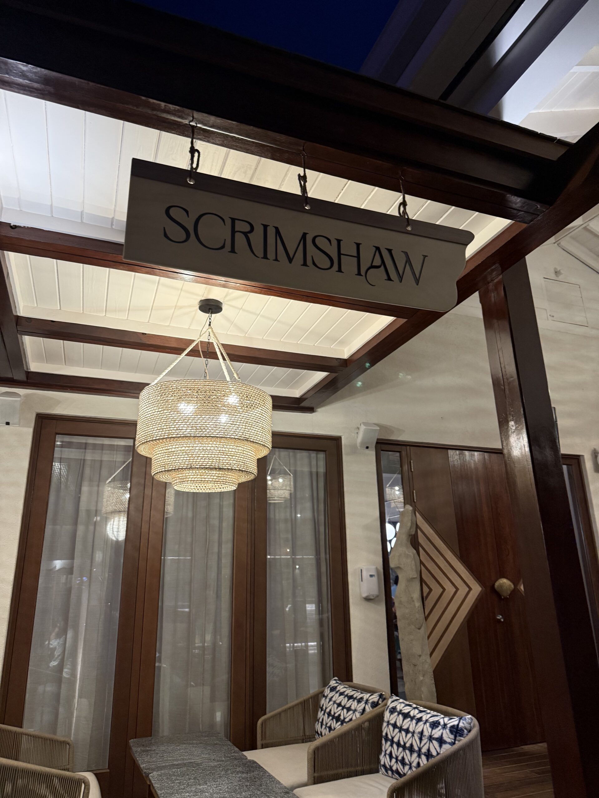 Dinner that evening was at Scrimshaw, the resort’s sustainable seafood concept. I ordered scallops, which were seared to perfection and paired with a fresh, crisp salad. The menu is seafood-forward with an emphasis on local, responsibly sourced ingredients. The service was attentive, and the open-air design of the space made for a perfect first evening.