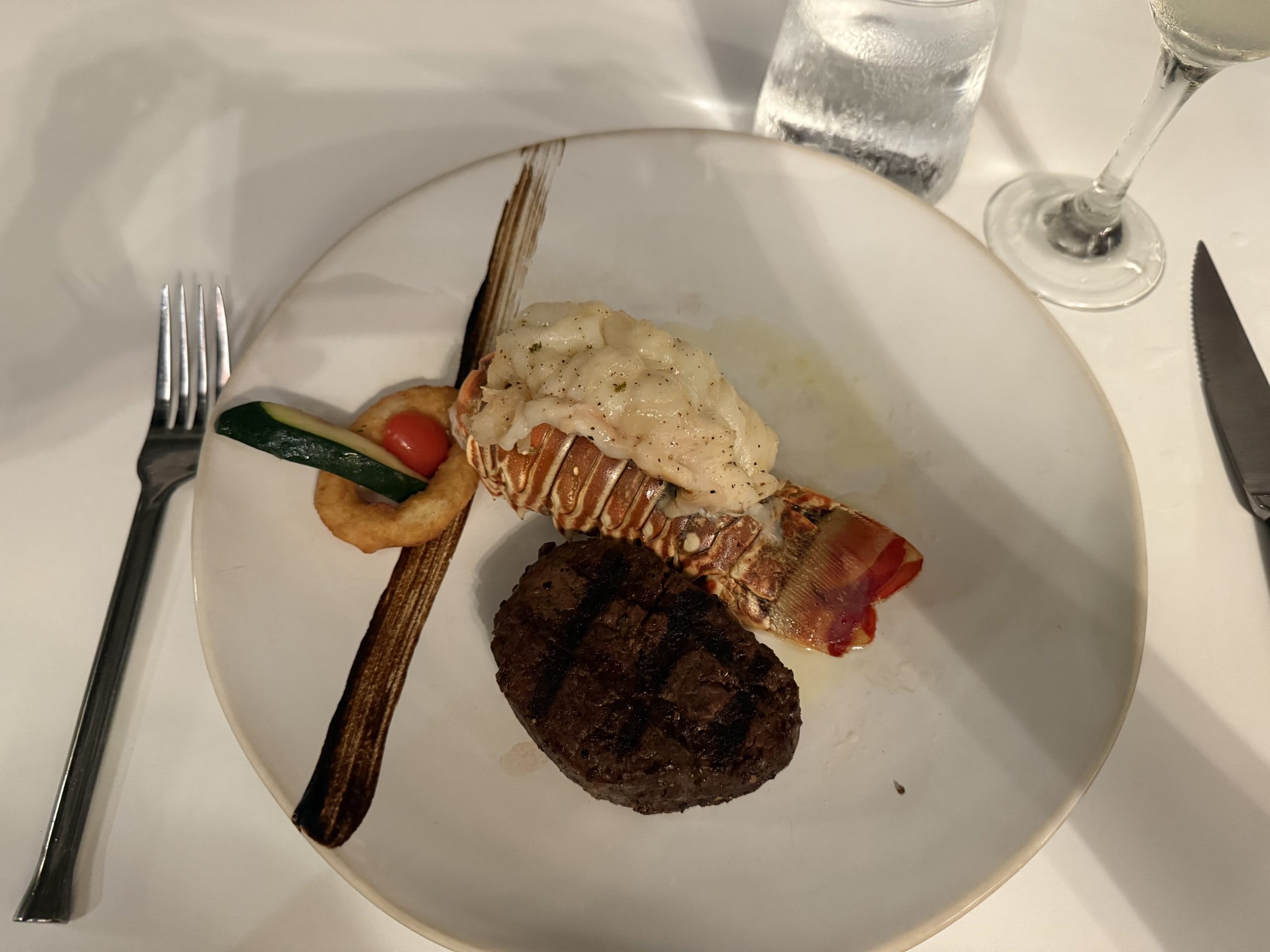We closed the trip with dinner at Butch’s Chophouse, the signature steakhouse brand found at many Sandals properties. Unsurprisingly, surf and turf was the runaway favorite at our table, and mine didn’t disappoint. The steak was cooked perfectly, the lobster tail buttery and tender, and the presentation elegant without being fussy. Butch’s is always a guest favorite, and this location lives up to the hype.