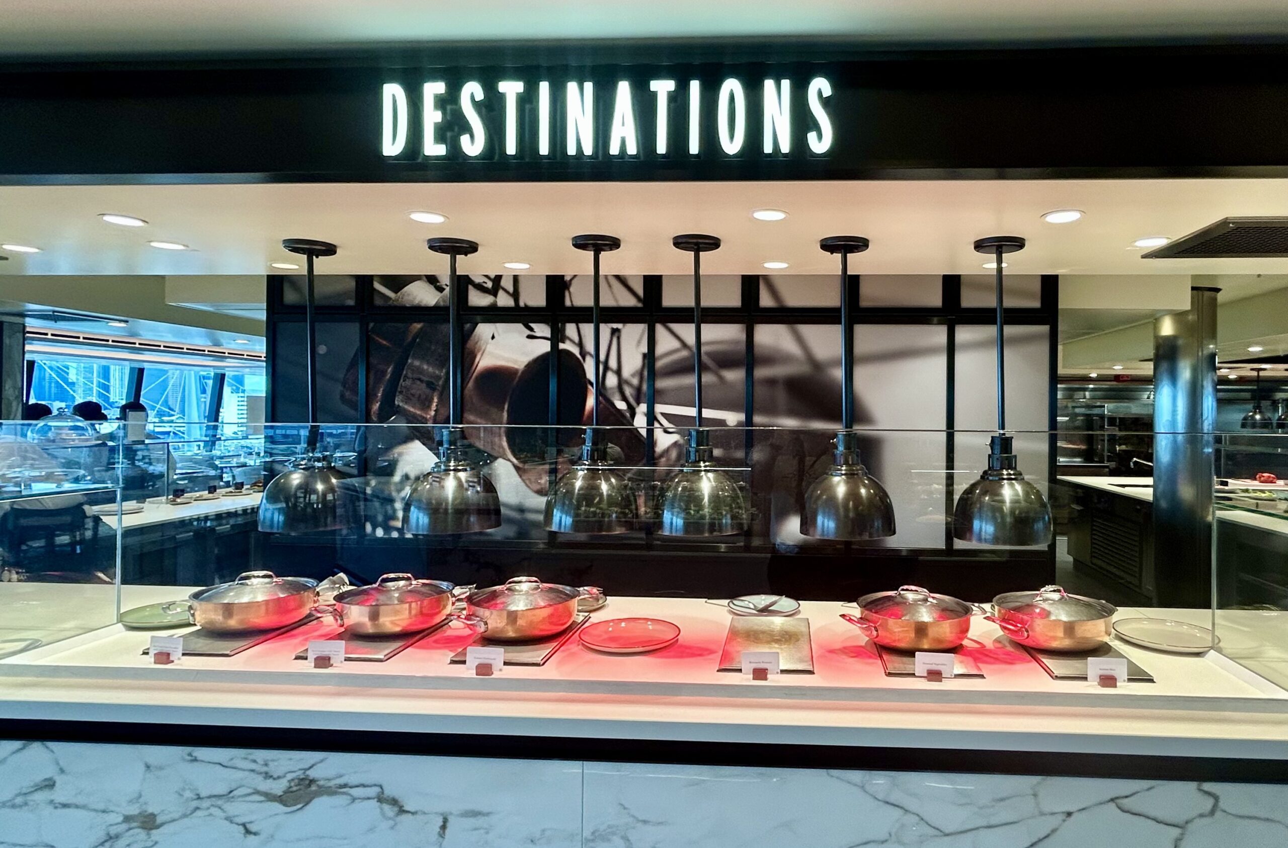 A more relaxed yet equally delightful dining option, the Emporium Marketplace offers an array of international dishes prepared fresh throughout the day. Guests can enjoy a rotating selection of cuisines, from Italian pasta and Spanish tapas to Middle Eastern mezze and Asian stir-fries. The cooking stations offer fresh sushi, fresh seafood, a daily rotisserie offering grilled, roasted, and slow-cooked meats, made-to-order pasta, freshly baked pizzas, and homemade sandwiches. The specialty stations offer charcuterie, fromagerie, boulangerie, and patisserie stations which enhance the experience with a variety of meats, cheeses, breads, and pastries.