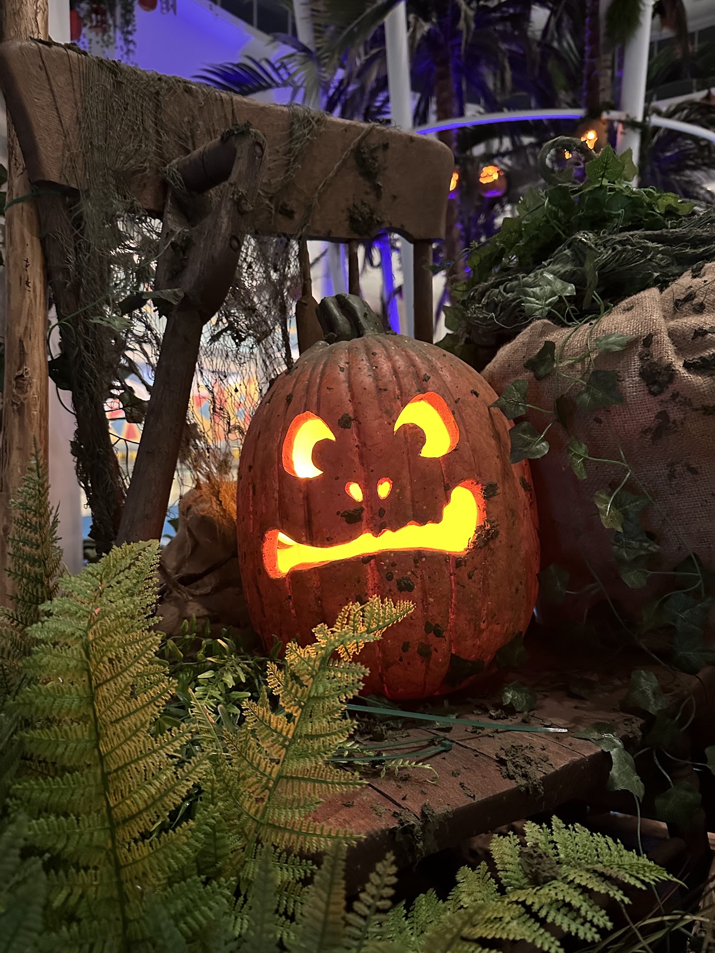 Every area of the park had been transformed into its own creepy little world, crawling with scare actors. Each scare zone had its own theme — eerie music, haunting set pieces, roving characters who fully committed to their roles. It felt like being inside a movie set that you could actually walk through. My personal favorite was “The Cat Lady of Crooked Lane”, an area where a woman turns trick-o-treaters into feral cats with her special potion.