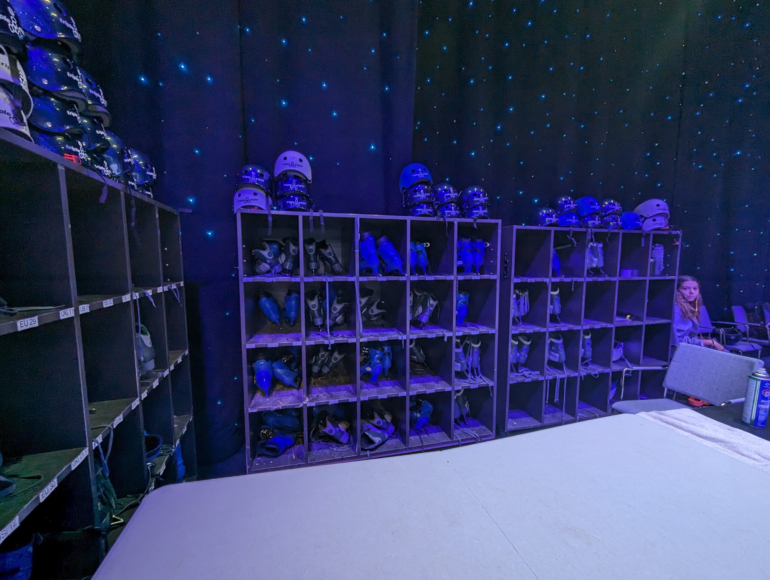 When you get to Studio B to enjoy the ice, make sure you are wearing your long pants and socks. Upon entry there will be the activities staff to check you in and help you walk through signing the activity waivers. Parents make sure to go with your children if they are the ones enjoying the experience. After checking in, the staff will direct you to the ice arena where you will be fitted with skates and a helmet! After you are all decked out, you can carefully step on the ice to begin your own ice journey! Don’t be afraid to ask for some pointers from the staff. Many of the staff are the same athletes who were performing during the shows and are happy to share their experiences with you.