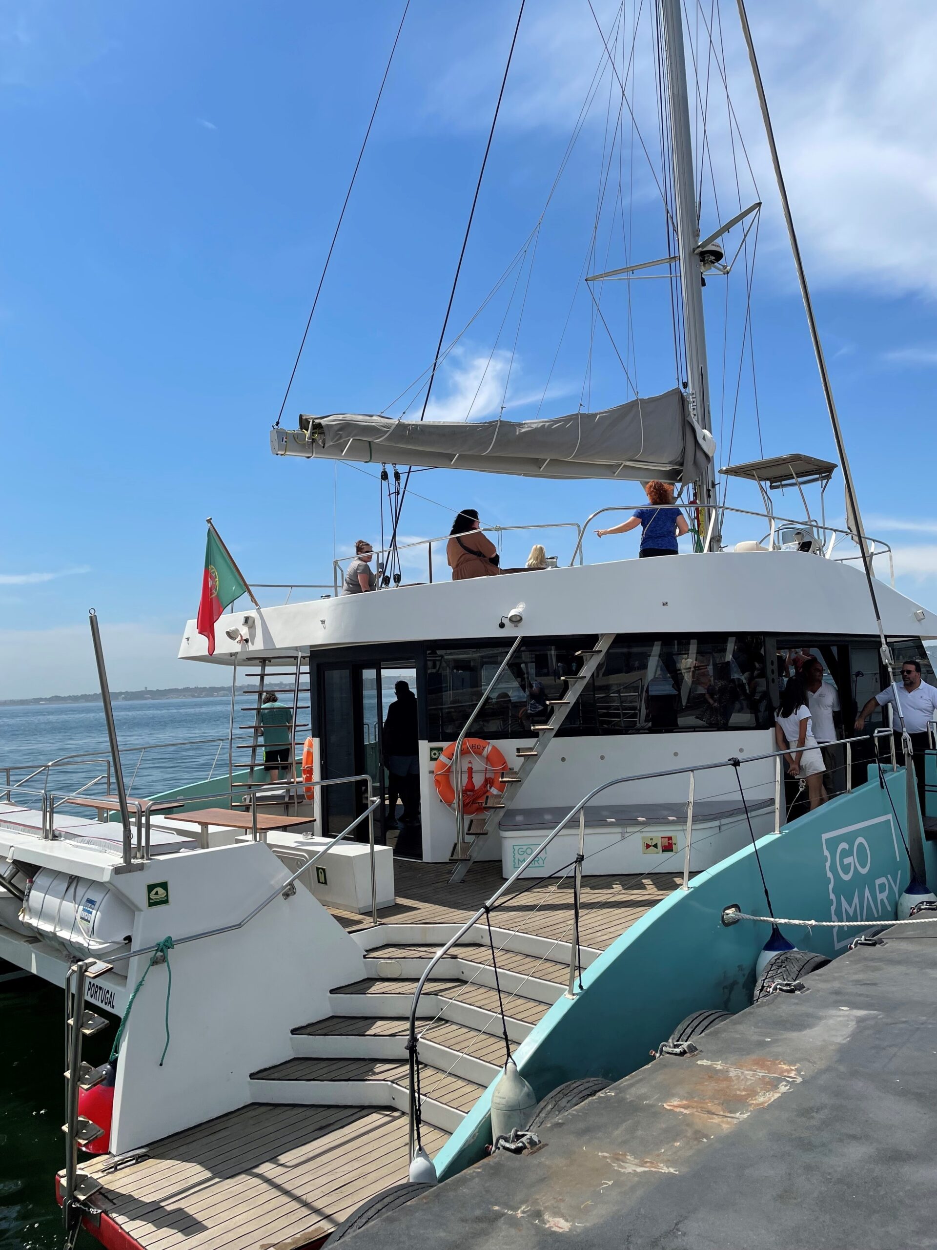 When we arrived in Lisbon, we first had a restroom break where you had to pay 50 cent (Euro) coins to use it. Our guides are prepared with EVERYTHING and handed out coins as we left the bus to make sure everyone is taken care of. These are the details that just continue throughout the whole trip to make sure everything is super smooth and you don’t have to worry about anything! We boarded a catamaran and cruised on the Tagus River for about an hour with snacks and drinks included as a nice touch.