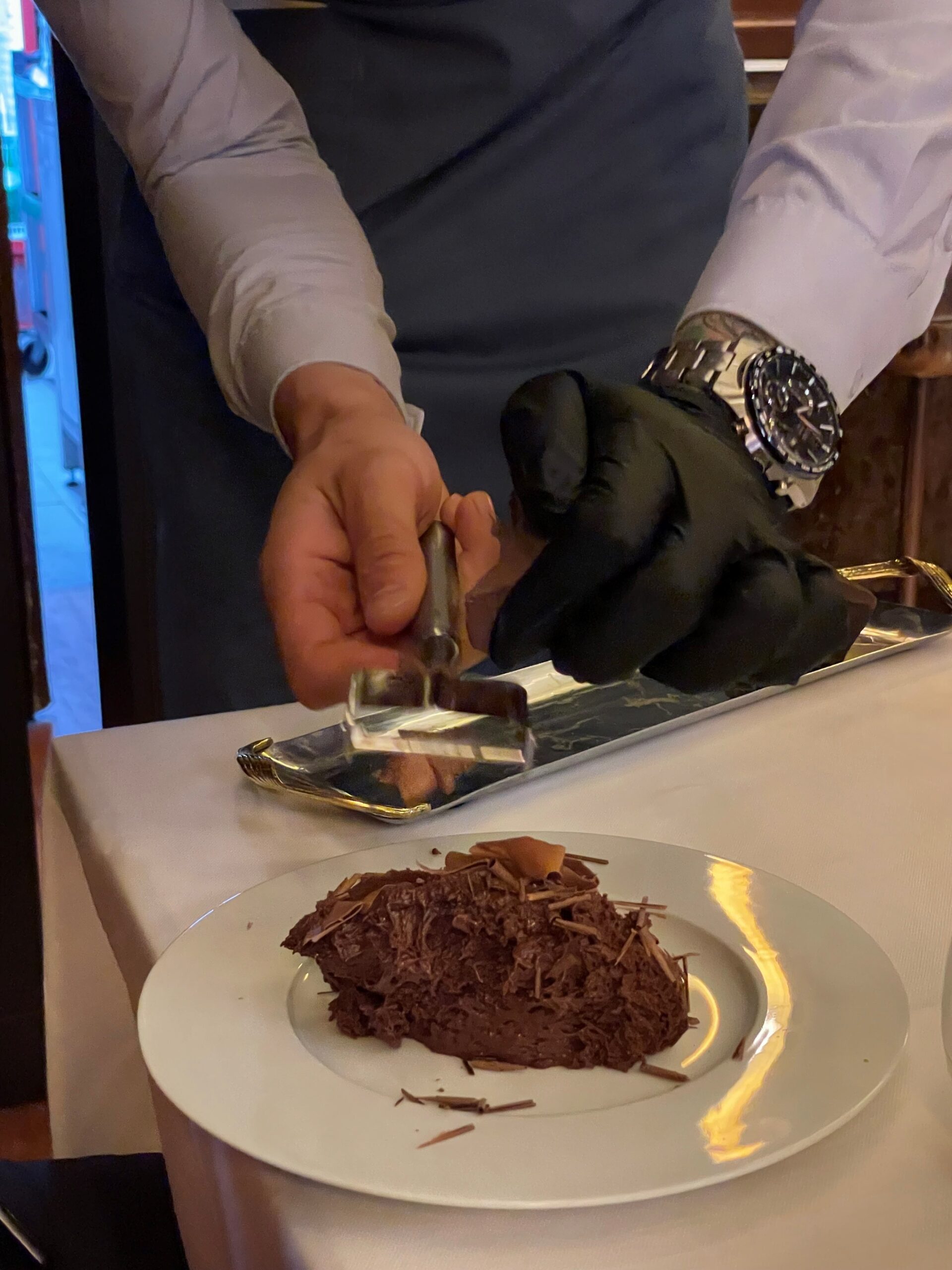 Our adventure was adults-only, but if there were children on this trip, this would have been the night they would have their own dinner with a movie and special activities. Separately, adults had an included dinner at the hotel restaurant. The chocolate mousse for dessert was so fun as the server shaved multiple kinds of chocolate right at the table!