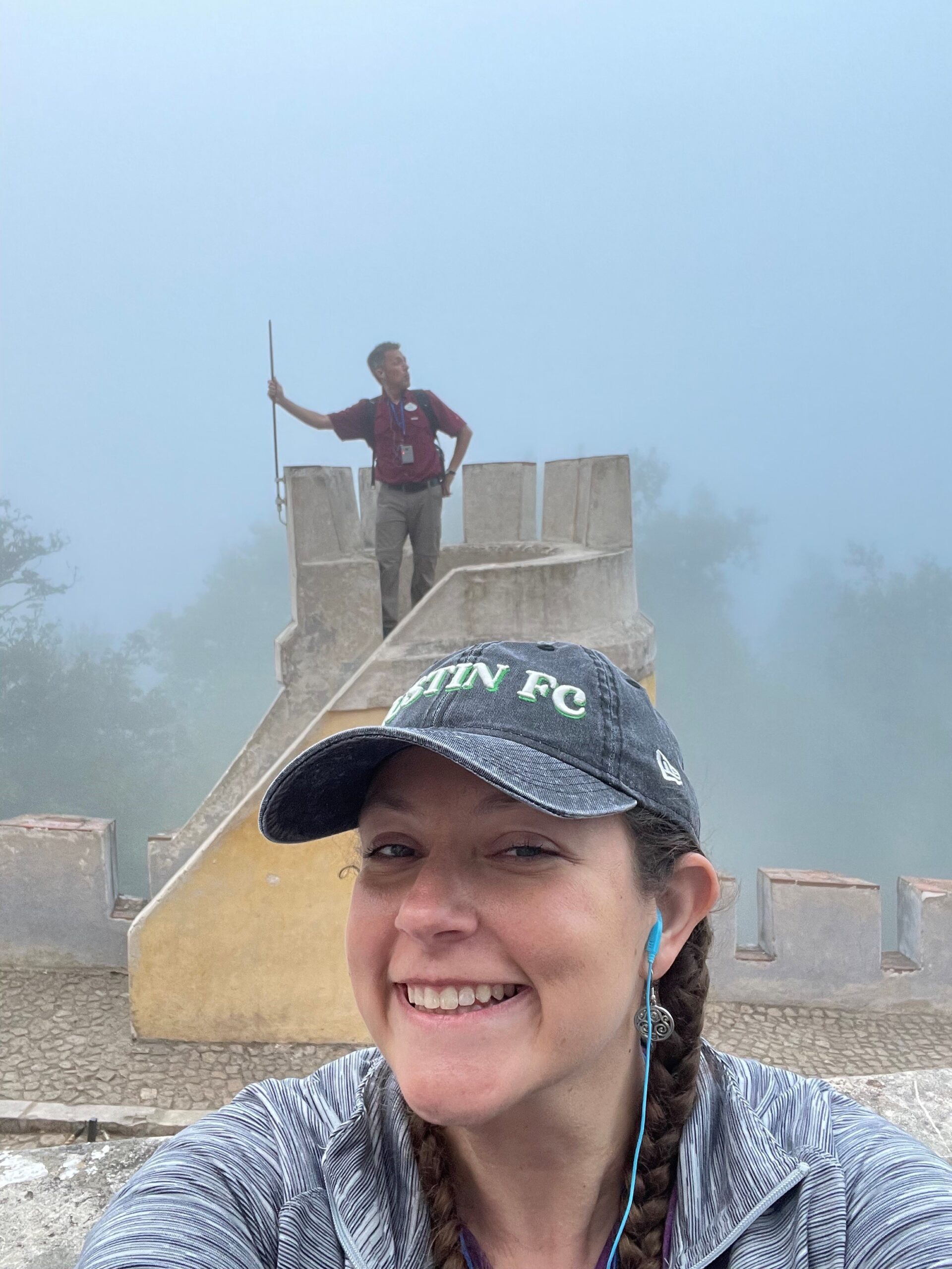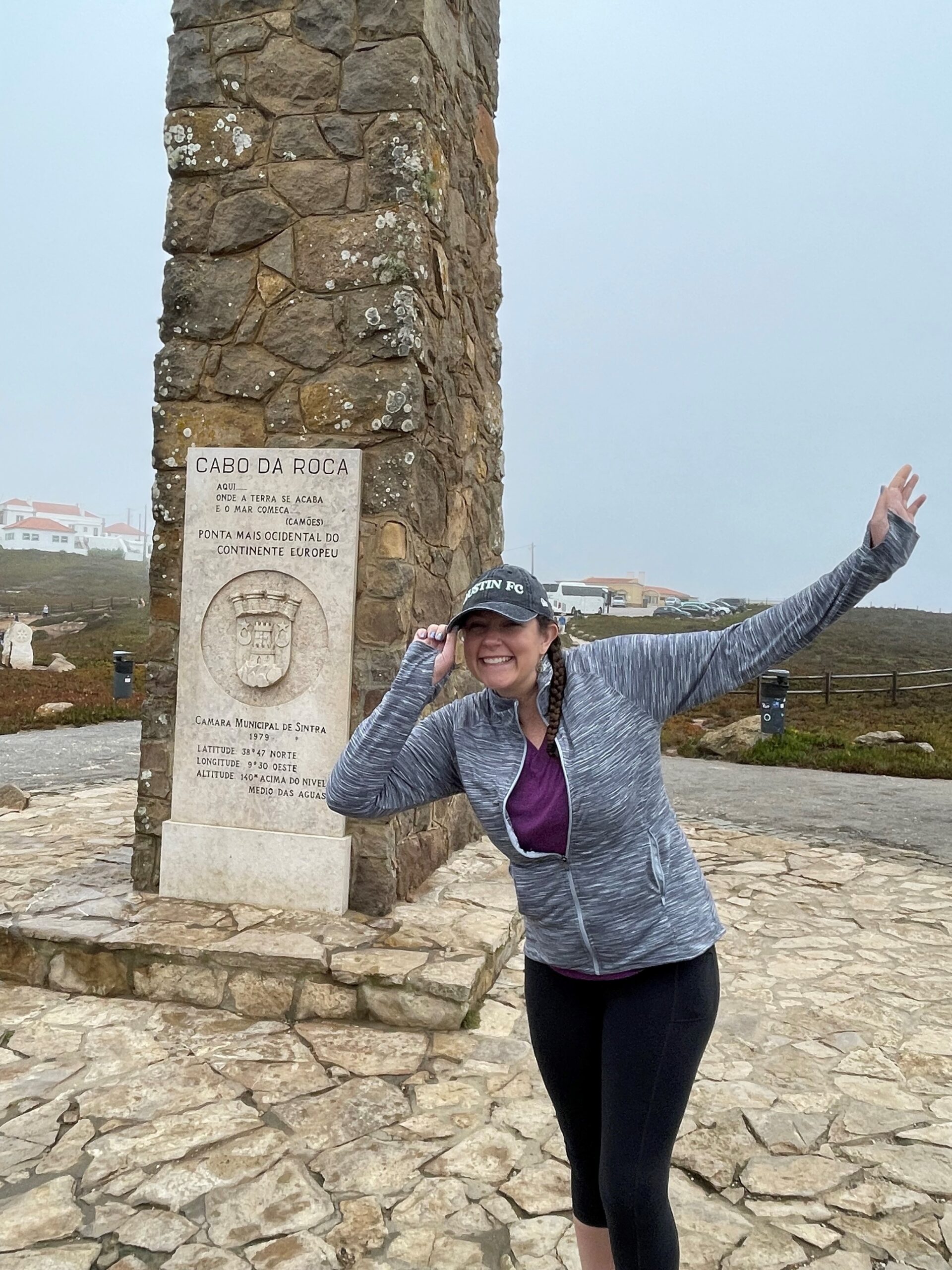 Today was the group’s consensus as the best day on the adventure (at least so far)! We started with a later breakfast in the hotel after sleeping in, and then traveled to the End of the World!! This is the westernmost part of Portugal and continental Europe. The spot as at the top of a cliff with normally gorgeous views, but it was cloudy and WINDY, which made for one of the most memorable and fun moments of the trip. Our whole group couldn’t stop laughing!
