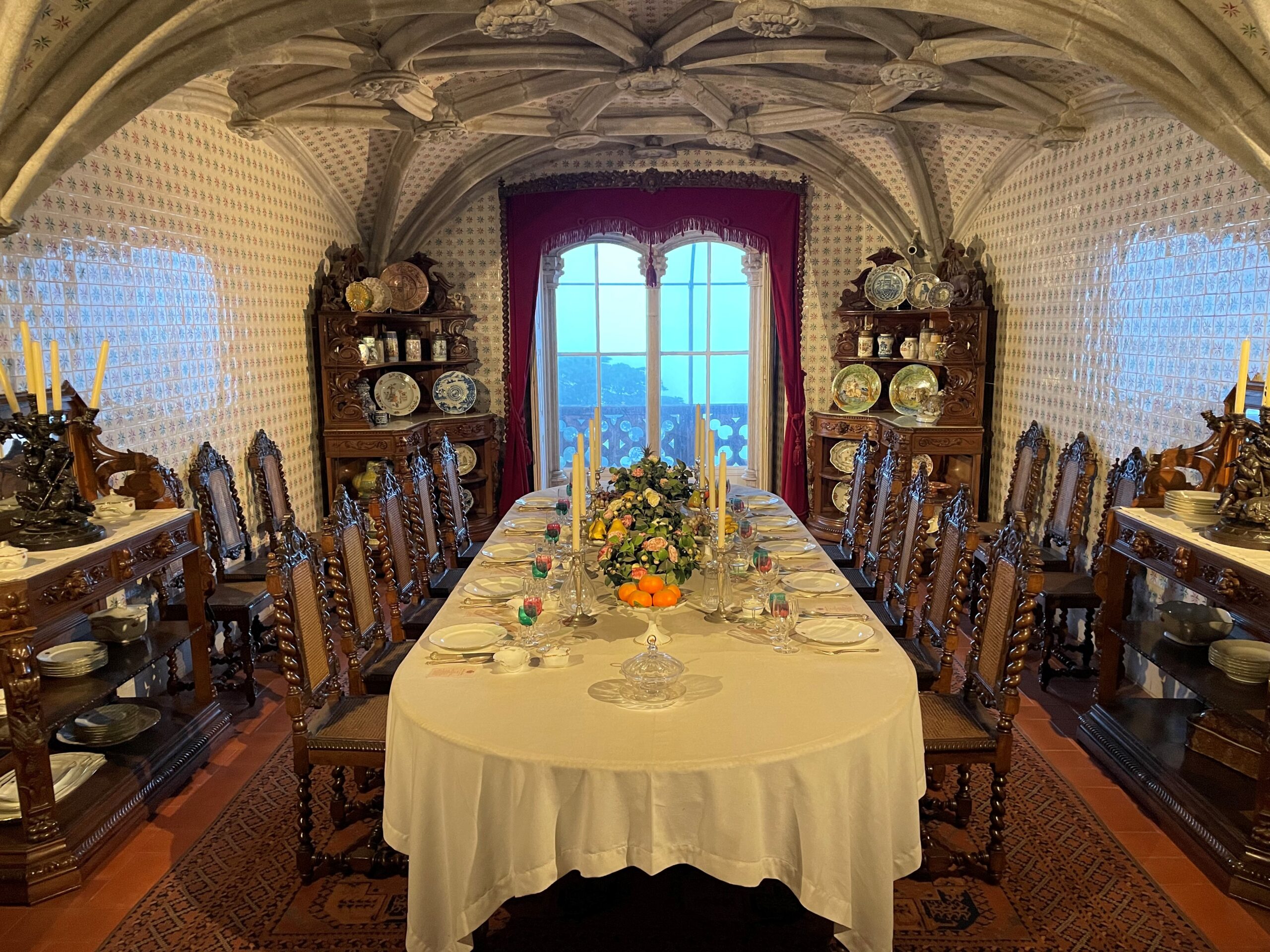 The last activity for the day was a “capstone” event – a private, after-hours, tour of Pena Palace! This palace in Sintra is one of the most visited attractions in all of Portugal. Our local guide was telling us that any time she takes a group, even with special “group tickets”, it is a minimum 3-hour wait. It is just that popular, and Adventures by Disney arranged for us to have the whole place to ourselves!! To add to the fun, our guides told stories and had volunteers from the group “act it out” to increase the engagement and fun of this once-in-a-lifetime experience!