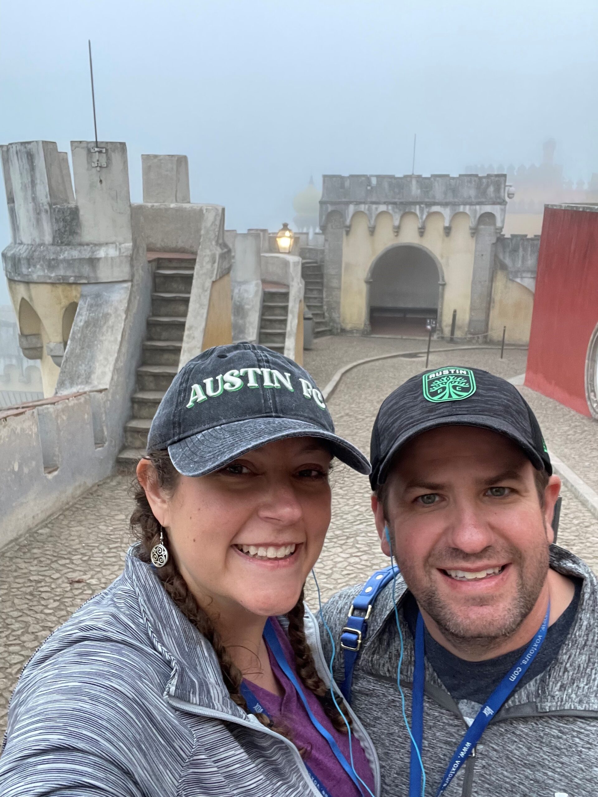 From there, we headed to the town of Sintra up in the hills and saw a change in both temperature and cloud coverage. It felt to me like we were going through the mist into a special place, just like in Frozen II. 😊 We had the opportunity for some shopping and dinner on our own (at our own cost). Many people opted to skip dinner, but we stopped at a local restaurant our guides pointed out, for a quick slice of pizza and some local beer. Before we ate, our guide walked us to a jewelry shop since many on the adventure were looking for Portuguese filigree, and made sure we had options to buy (which I did)!