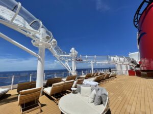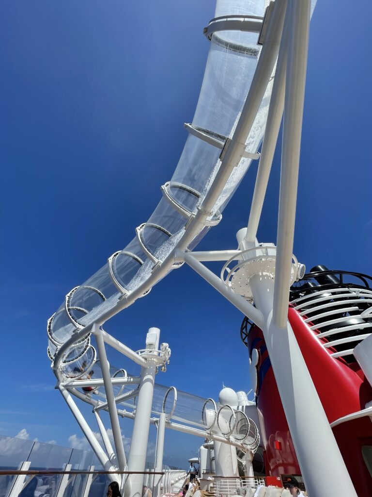 This slide is 760 feet of water adventure around the cruise ship… but the most amazing part? The immersive screens inside the tubes that let you take part in an adventure with our favorite Mickey pals!