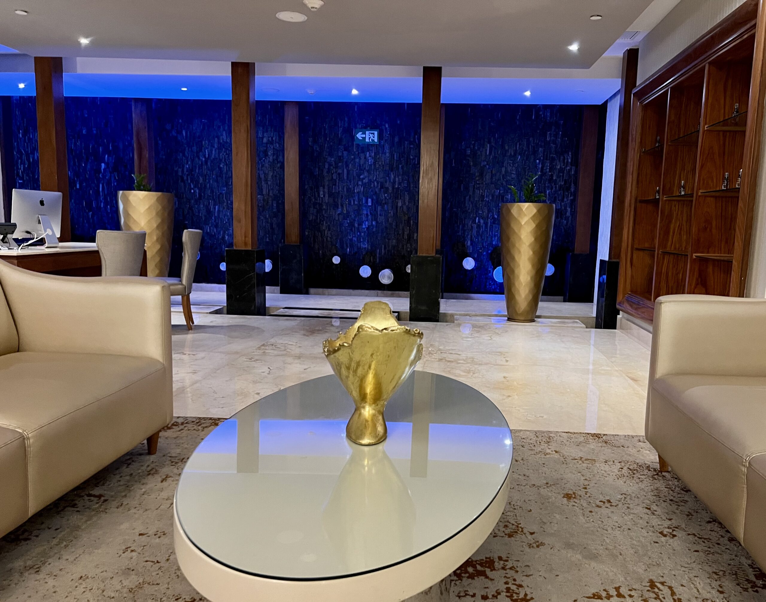 What I experienced was a chance for me to relax in a soothing environment that stimulated all five senses. Upon entering the spa, my sense of smell was intrigued by the aroma of sandalwood and floral. Visually the spa is stunning, as you walk through the hallway lined with waterfalls that leads you down to the hydrotherapy pools lit up beautifully in hues of blue and turquoise. My sense of taste was heightened by the hibiscus infused water offered to me before and after my massage during my time at the relaxation retreat.