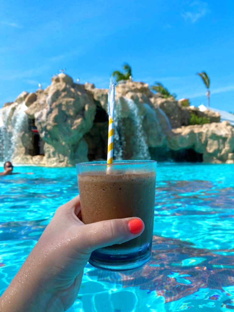 There are 21 different places you can grab a bite! From ordering a pizza by the pool to dressing up for dinner they have it all! Plus it all is DELICIOUS. They do not skimp on their food. Did you know they actually bring in professional chefs from different cuisines to make their dishes/menus? Be sure to take advantage of the swim up bars also! Plus a kids swim up smoothie bar!