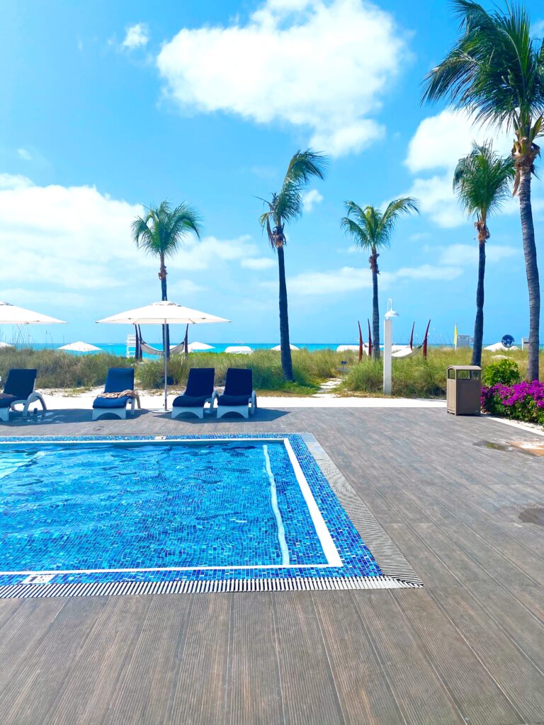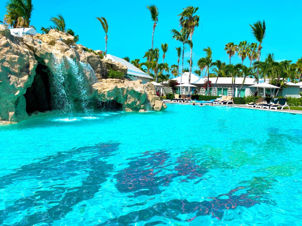 There are NINE different pools throughout the property, a lazy river, water slides, surf simulator, splash pad, seriously everything you can think of! Pictured below is the adult only pool!