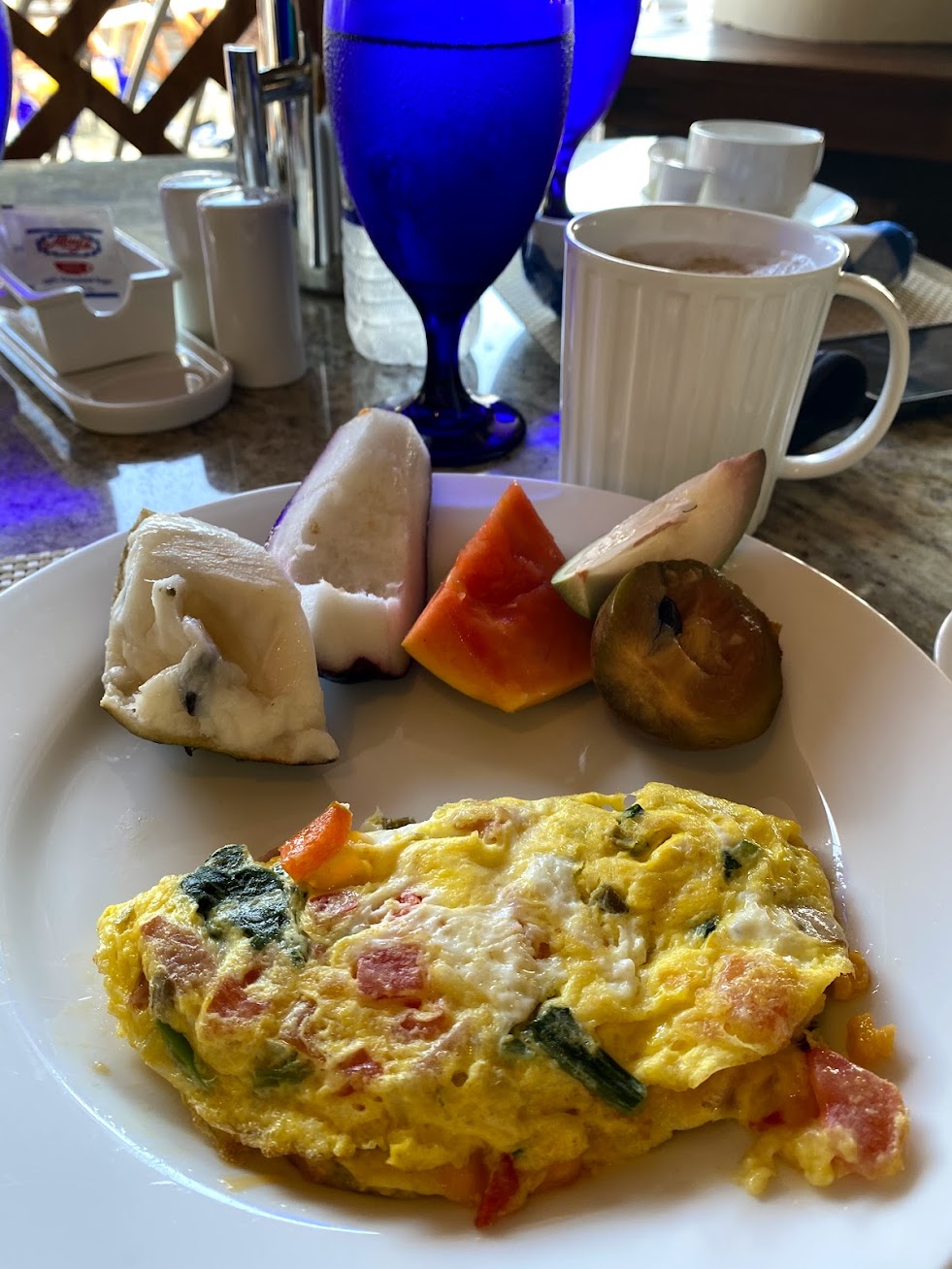 At Beaches Ocho Rios, you will have 8 dining options to choose from for all of your culinary needs. We ate breakfast each morning at Bayside, which is the buffet. It was outstanding each day and each day they had different offerings for the main course. There is an omelet station (so delicious), waffles/pancakes/French toast station and a smoothie station!!