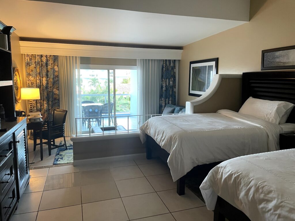 This room came with Concierge Service which includes someone who helped with dining reservations, a stocked bar with your preferences of drinks (both alcoholic and non-alcoholic), and access to the Concierge Lounge for treats and drinks while you are heading to the beach. No matter what room you choose, you can rest assured that each room will be cleaned with Sandals Premium Cleaning Protocols. Our room was very clean and the beds were super comfortable.