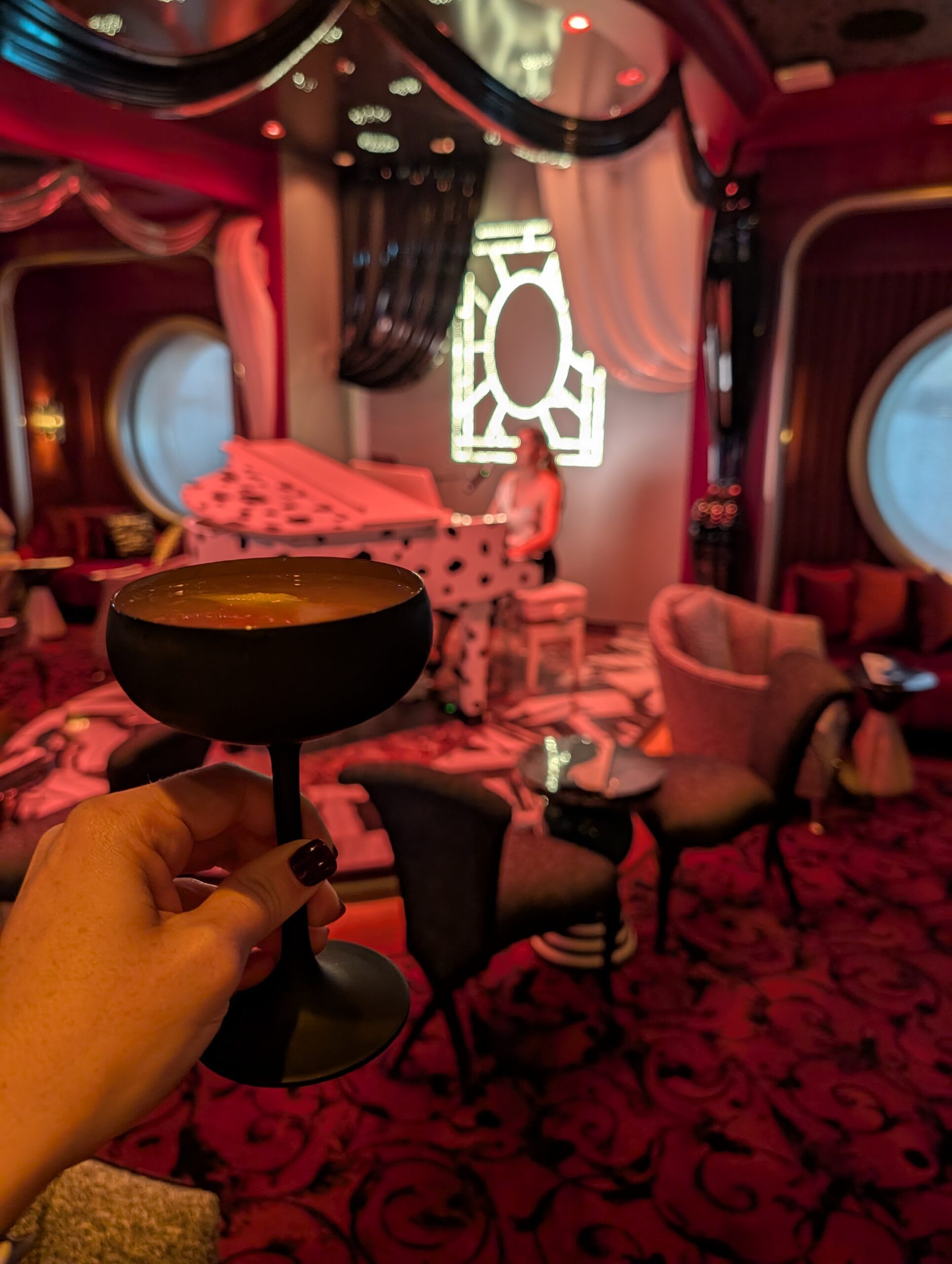 Inside De Vil’s Piano Lounge on the Disney Destiny: Drinks, Atmosphere & Cruella Fun