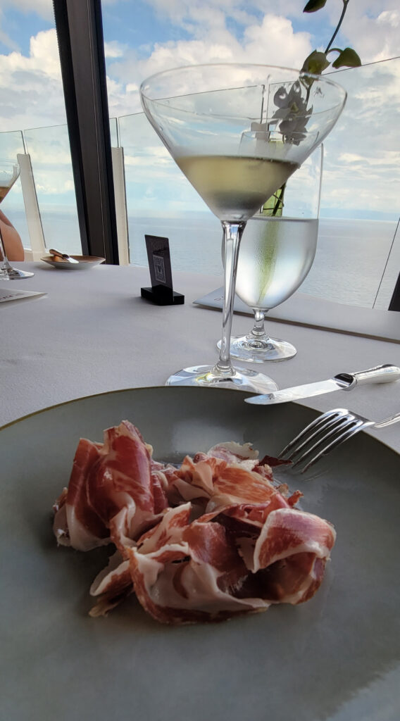 Our first course was Bellota Ham and was described as a palette opener. It was super thin sliced meat that reminded me a little of prosciutto.