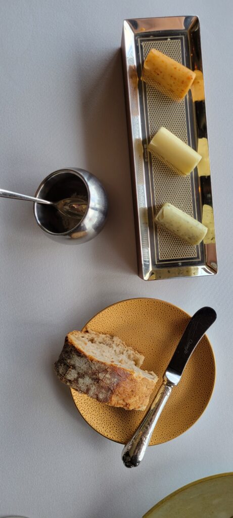 As we were brought to our table, the host shared some of the details of the décor (hidden Remy’s) as well as two wines featured in the film Ratatouille being displayed in the wine case. It’s a small and intimate dining room with fantastic views.