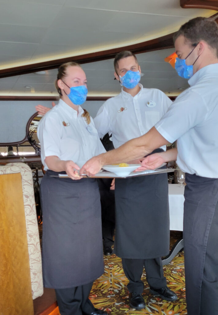 One of my favorite parts of my recent trip on the Disney Dream was brunch at the fine dining restaurant Remy, inspired by the movie Ratatouille. We enjoyed a prix fixe menu developed by Chef Scott Hunnel (from Victoria & Alberts at WDW Grand Floridian) and 3 Michelin starred Chef Arnauld Lallement (from l’Assiette Champenoise hotel in France).