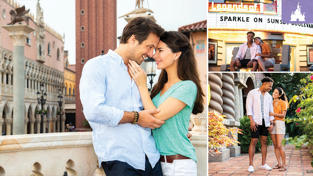 In EPCOT, Guests can choose one of the following pavilions for their photoshoot: Germany, Italy, The American Adventure, Japan or Morocco starting February 24th. Guests can experience this option at Hollywood Studios on February 21st and can utilize Tower of Terror, Gertie the dinosaur, Chinese Theatre’s façade, or use the colorful neon signs and art deco architecture of Hollywood Boulevard and Sunset Boulevard as backdrops at this location.