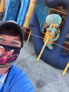 locations next to the Jimmy Fallon ride. Next take the time to stroll down Hollywood Blvd you can see Homer Simpson, the cast of Scooby Doo, the cast of Minions, and some of the Hollywood favorites. You may be lucky enough to see Hello Kitty located right outside her store. I suggest you continue down Hollywood Blvd and visit the Spongebob Store you may see Spongebob, Patrick, and Squidword.