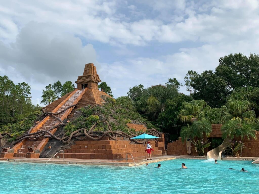Coronado Springs has multiple satellite pools as well as a large main pool located at the Dig Site, called the Lost City of Cibola. This pool has a play area, slide as well as a place to grab a snack and a drink.