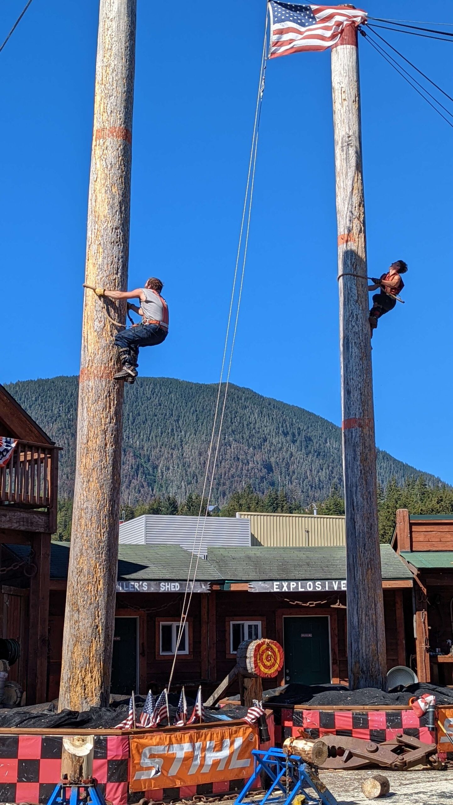 After our delicious and very fresh lunch it was time for our excursion. We opted to experience the The Great Alaskan Lumberjack show. This was such a fun show for travelers of all ages. They not only feature their amazing skills and how lumberjacks had to use these skills back in their day, but they create a fun competitive story to get the audience excited and involved. We laughed a lot and held our breath even more. We got to see them throw axes, use different cutting techniques, climb up trees, and even have a little competitive fun trying to balance on a log in water. We are happy to share that our team won! After the show you can even get your picture taken with the team and visit their shop for some more fun souvenirs.