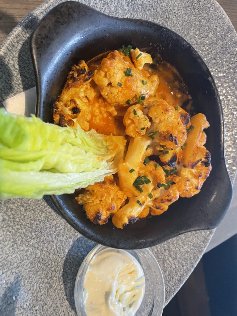 The food here was absolutely amazing! The flavors were unique and complementary to each dish ordered. Our waitress was wonderful and very knowledgeable about the menu and helped us to decide! We started with multiple appetizers because they all sounded amazing and what was even better was, they all tasted amazing. The restaurant is known for their Parker Bread Rolls and spreads: pub cheese, bacon jam and citrus butter. This could have been a full meal for the two of us! Then we had garlic shrimp and buffalo style cauliflower and the portion sizes were very generous!
