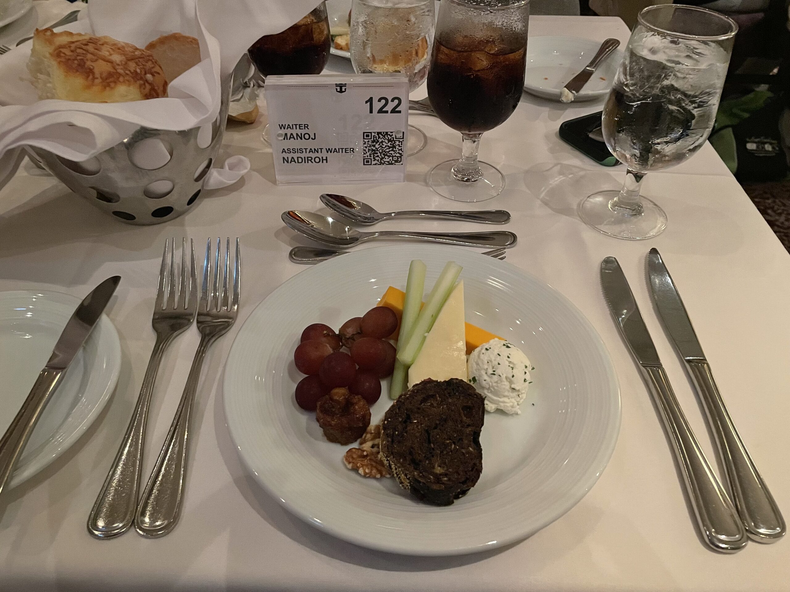 As far as drinks go, they had several wine choices plus you could choose to order a cocktail. If you have a soda package, you will be able to use that package in main dining room. Other options for drinks were tea, coffee and water.