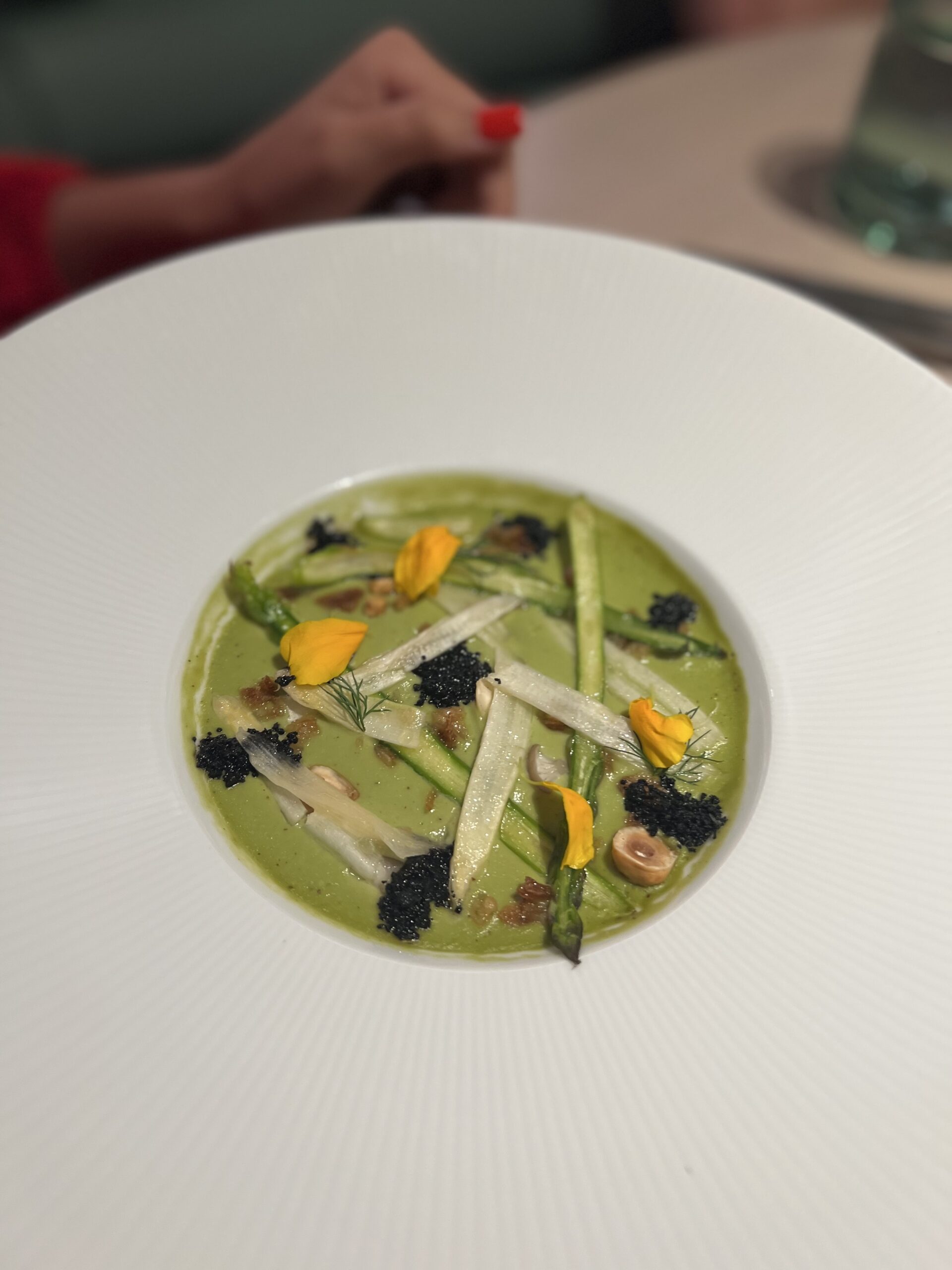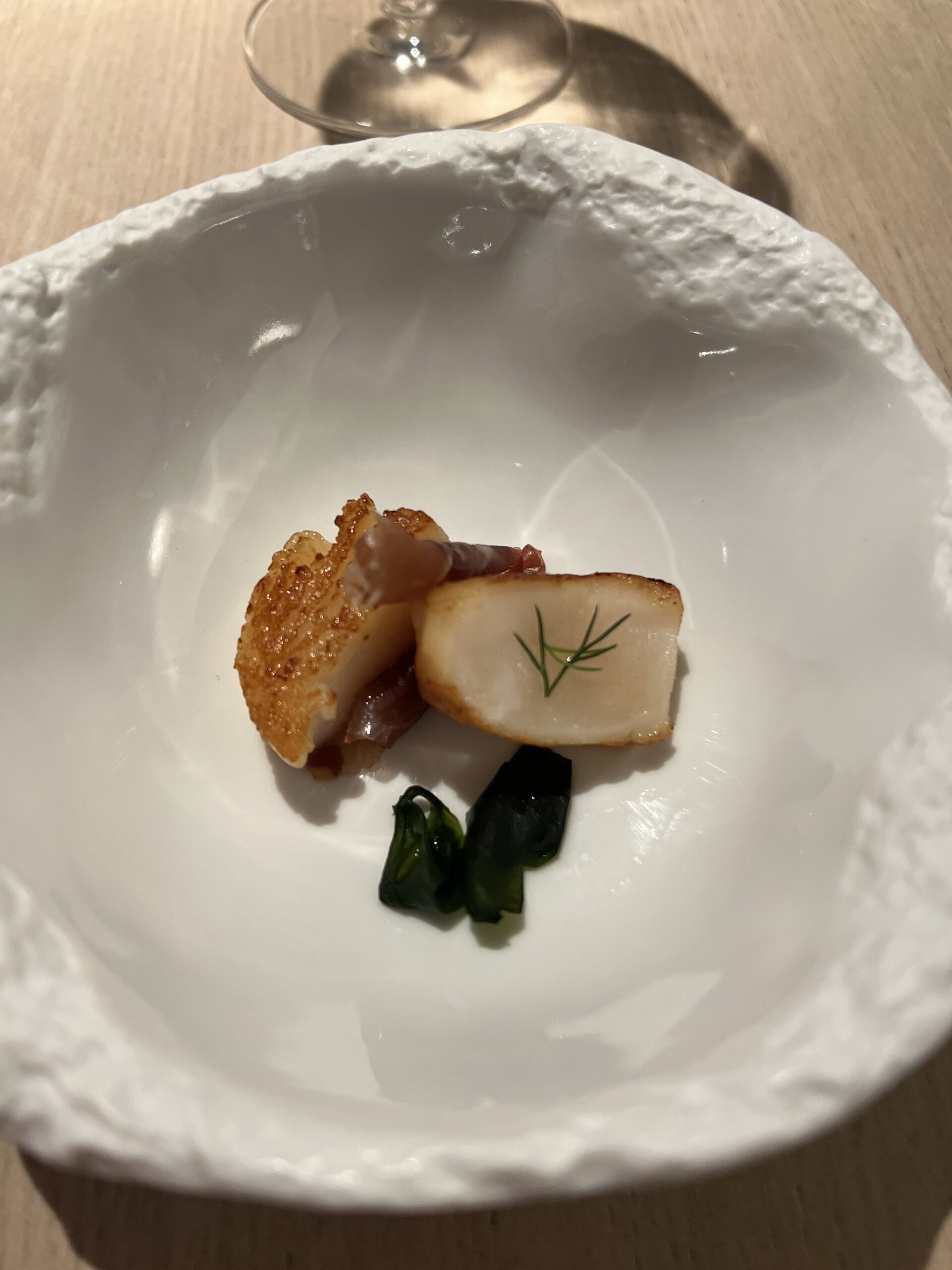 The setting is laboratory-like and a tasting menu is offered. The menu is presented more like a list of ingredients, and it’s fun and interactive and like nothing I have ever experienced on land or at sea.