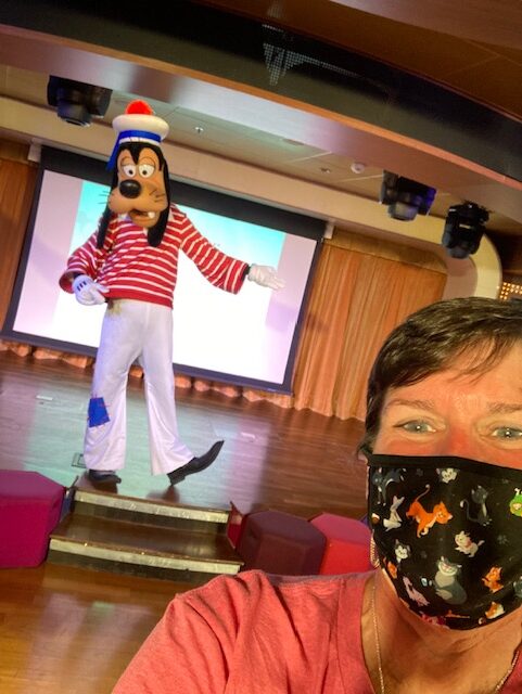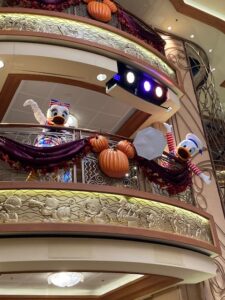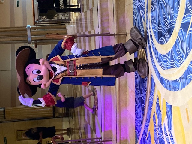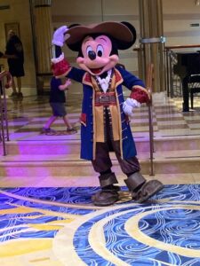 If you are a Disney character fan like me, you will experience character overload. They are accessible and located all over the ship. I was thrilled to be greeted every morning in the lobby with many Disney characters. I never had a day when I didn’t see at least 10 or more characters. It was fun to interact with them. They also had themed clothing each day. I was on the Halloween on the High Seas sailing. One night was Halloween costumes, plus a Halloween Dance Party on the deck. A pirate night was another theme. So, make sure you pack your costumes.
