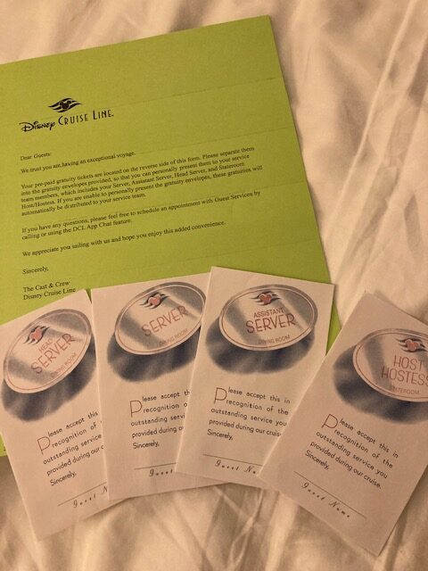 As you may know, tips can be included when booking your sailing with DCL. The service you experience on the ship is out of this world. Towards the end of your trip, you will receive tip envelopes for your steward and table staff in your stateroom. The steward and table staff will be assisting you throughout your cruise. If you find that they performed excellent service you can add more to the tip envelopes. You will then bring them to the individuals on your last night. So, make sure that you have some cash for those tips. I also tipped the shuttle bus driver and our room service attendant. If you don’t have cash, guest services can cash a check up to $100.