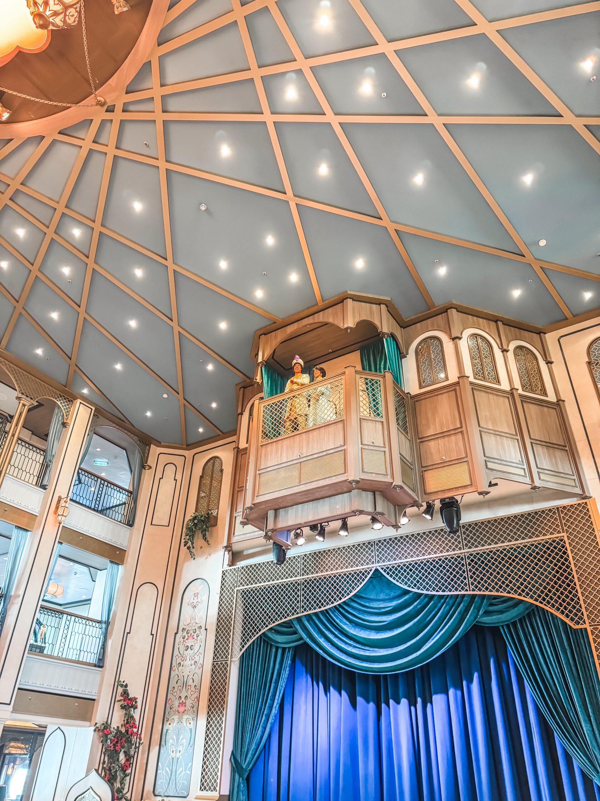 The Disney Treasure, which set sail in 2024, celebrates the spirit of adventure; a theme inspired by explorers, dreamers, and classic tales of discovery. From the moment guests step into the Grand Hall, themed after Aladdin, they’re transported into a world of gold tones, rich blues, and elegant Arabian-inspired designs.