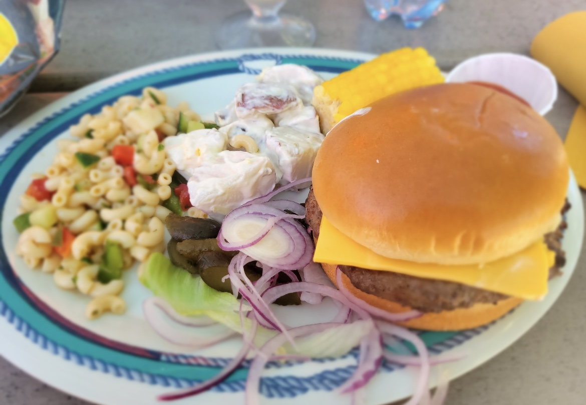 We had a delicious lunch at the buffet - burgers, chicken, ribs and a host of different salads and sides. Everything was fresh and delicious!