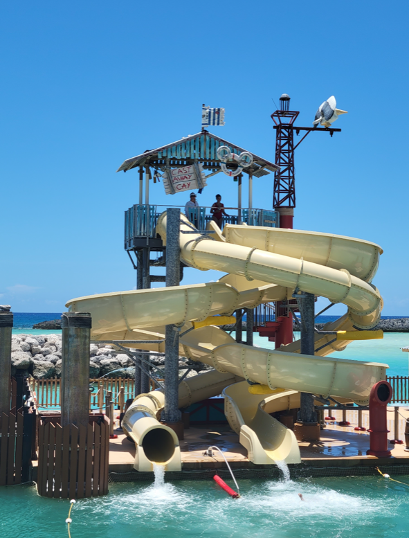 After lunch we took the tram back to Pelican Point. We went down the slides, snorkeled for a bit and of course, worked under an umbrella 🙂 We walked out to Heads Up Bar and got mojitos with the most beautiful view!