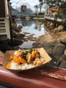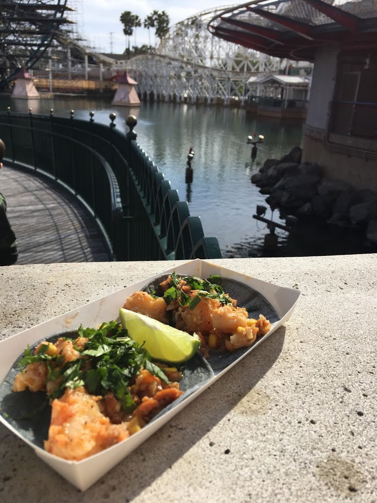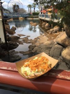After a ride on Toy Story Mania it was time for my last stop, Off the Cob. The Shrimp Boil Tacos with sausage and corn were really speaking to me. I’m so glad I stopped here because this was by far my favorite tasting. The flavors were incredible and spicy. Genius move to put sausage in a taco, plus the shrimp were big and meaty. I was completely impressed.