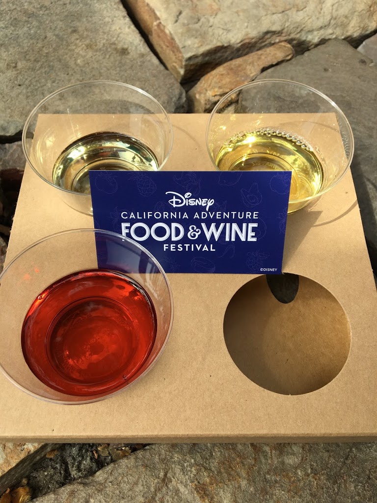 After lunch the kids wanted to see Disney Junior Live which means waiting in line. Normally, waiting in line is not too enjoyable but it’s a different story during the Food & Wine festival. Waiting in line is the perfect time to pick up a flight of wine at Uncork California! You can decide between a red or white flight. I went with the white wine flight featuring wines from Napa, Santa Maria, and Monterey. The wine flight comes in a portable tray carrier with the wines listed on a business card so you know which one you are trying. Each wine had totally unique and different flavors. It was a great assortment and I have my eyes on the red wine flight for next time.