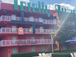 Yo! Get to the rooms you say! Disney’s Pop Century has a variety of rooms and each one will put you in a different era. If you are wanting to “hang out” in the most convenient to the Disney Skyliner, Hippy Dippy Pool and Classic Hall, staying in the 60’s era in a Preferred Pool View or Preferred Room is the right place for you. Want to have a view of a pool, staying in the 50’s or 80’s,90’s era will get you a “tubular” view of the Computer Pool or Bowling Pool in a Pool View room. Looking for a little quieter area and a playground the 70’s era Standard view will be “off the hook.”