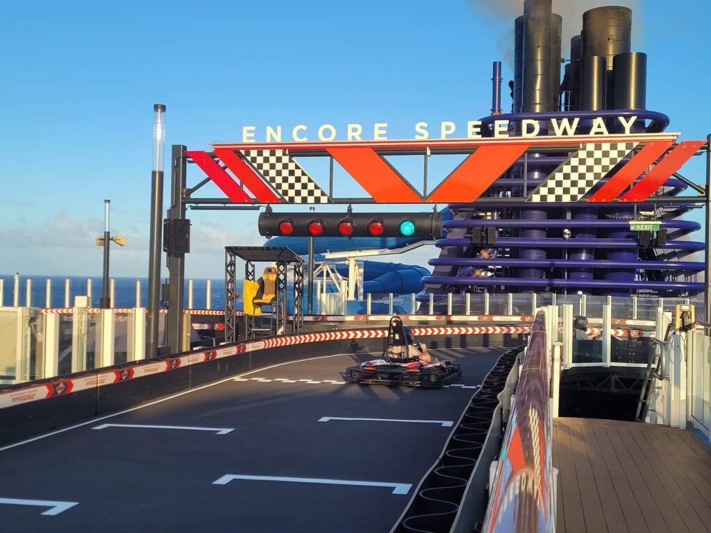 The Norwegian Encore was built with young people in mind. The Encore boasts the largest go-kart track at sea, spanning over 1,100 feet of track. While this activity is not included in the cost of the cruise, adults and children can ride for just $15 per person per ride, or ride as much as you want for the duration of your cruise for a set cost. The Encore also includes an area called the Galaxy Pavilion. For an additional cost, cruisers can immerse themselves in many different virtual reality racing games, mazes, puzzles, and escape rooms. Have you ever played laser tag on a cruise ship? The Norwegian Encore has a huge open-air laser tag arena with Greek and Nordic themes. Hide behind the tail of a serpent and blast your friends, or stand under the fallen Greek pillars to take cover from the enemy. This experience costs $9.95 per person per game.