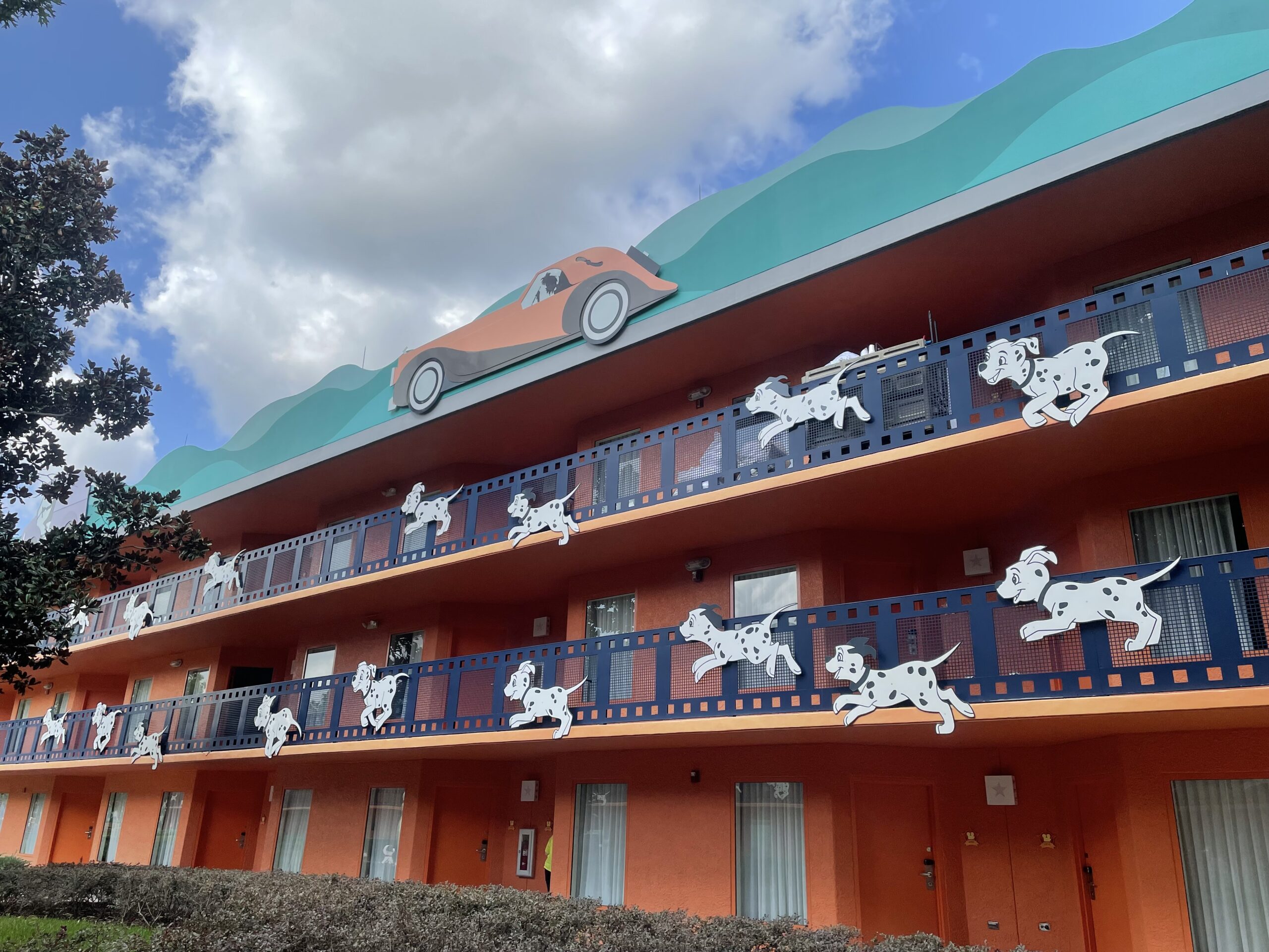The resort has 5 different themed areas, all with larger than life statues from popular Disney movies! These areas are: 101 Dalmatians, Fantasia, The Mighty Ducks, Herbie The Love Bug, and my favorite, Toy Story! The statues located throughout the resort are great for photo opportunities for both kids and adults! We were placed into the Mighty Ducks area. It was fun walking through the mask every morning! Walking through the 101 Dalmatians section was fun, and made the walk to the room go by fast.