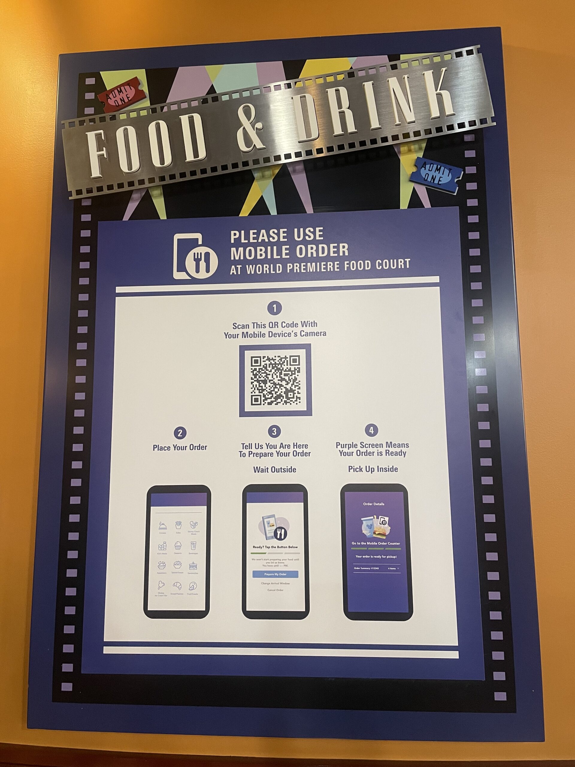 All Star Movies Resort has their World Premiere Food Court, where you'll find plenty of options for breakfast, lunch, dinner, desserts, drinks, and snacks! We love starting our day with Mickey waffles! All Star Movies is participating in the Mobile Dining option, which we really enjoyed! We could decide what we wanted to eat before leaving the room and have it ready for us when we got to the dining hall, or after our day at the parks we could order and have our food ready when we hopped off the bus. I am hoping this way of ordering at WDW stays as an option!