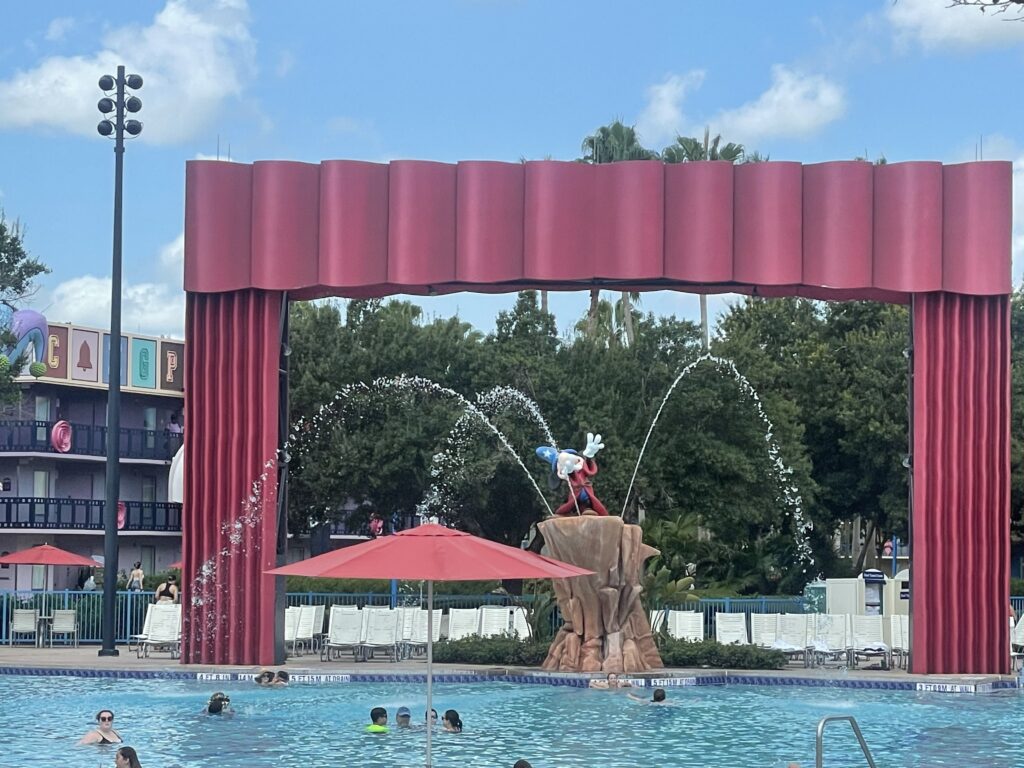 All Star Movies has 2 pools on its property. One is located in the main center of the resort, the Fantasia section. At the Fantasia pool you can find Sorcerer Mickey. Kids will love the water that shoots out from Mickey's base that he stands on. The resort has a pool located in The Mighty Ducks section of the resort, which is conveniently called, Duck Pond Pool. Both pools were clean and had plenty of towels to go around! We don't take a midday break anymore, but being on property gives you that option! Hop on the Disney Transportation bus and head back to the resort for a midday dip in the pool (or even a little nap). The water was warm enough to enjoy a nice swim, but not too warm that it didn't cool you off.