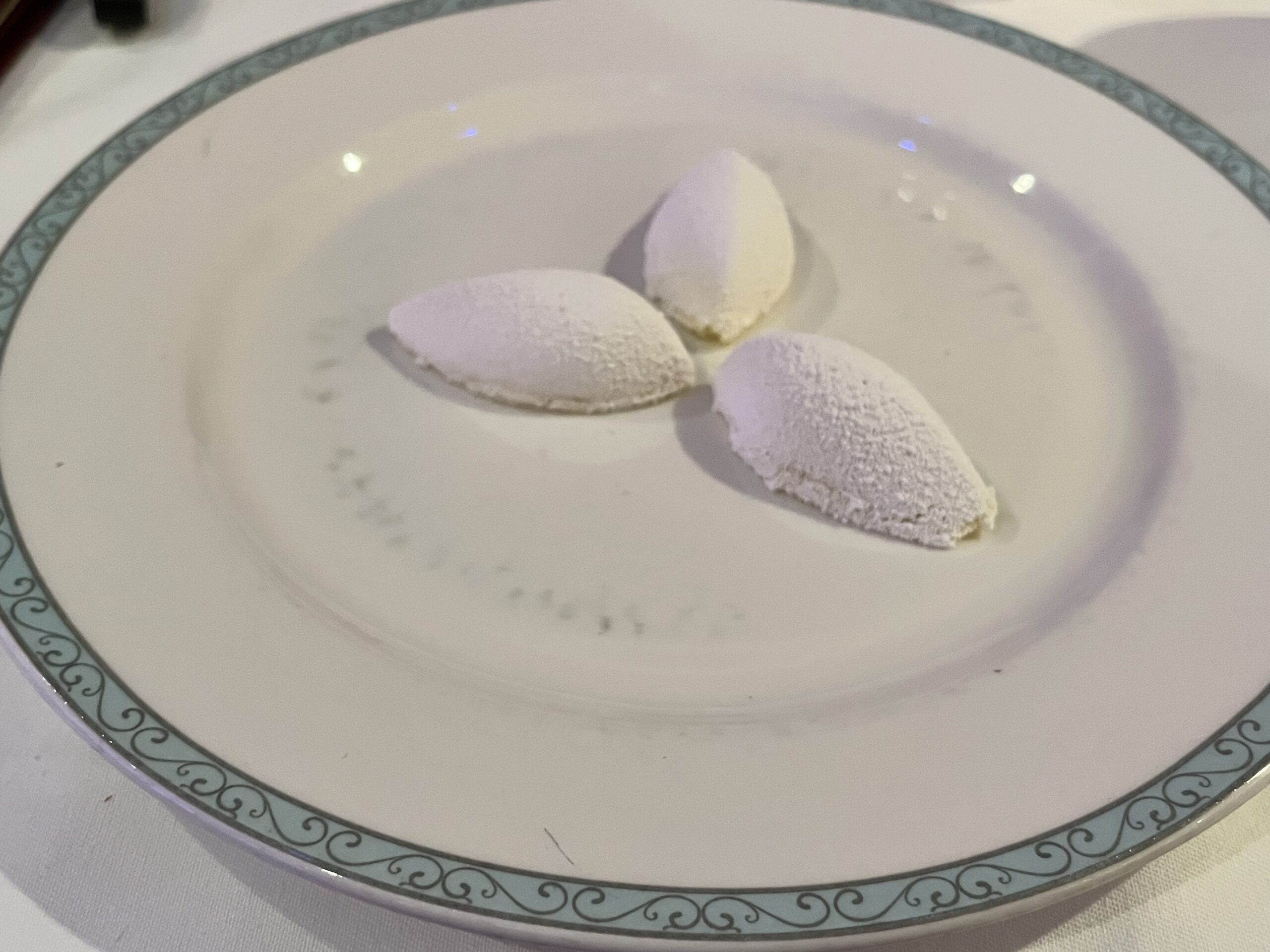 Let’s talk about desserts! The chef created some delicious selections for me. Some were modified from the main menu and others were unique creations. My server talked with me on the first night and asked about my preferences. These were incorporated into each meal including my desserts. One evening I had a lychee dessert served in the World of Marvel dining room. It was so great I asked for it on the final night also. They changed the coloring of the dessert so it matched the winter theme of Arendelle. Additionally, they surprised me with panna cotta, as I had mentioned to the server that it was my favorite dessert. This was a fantastic surprise. If you eat gluten free, breads and desserts may be available. If you are lucky enough they are good. But every once and a while they are great! This was my experience on the Disney wish.