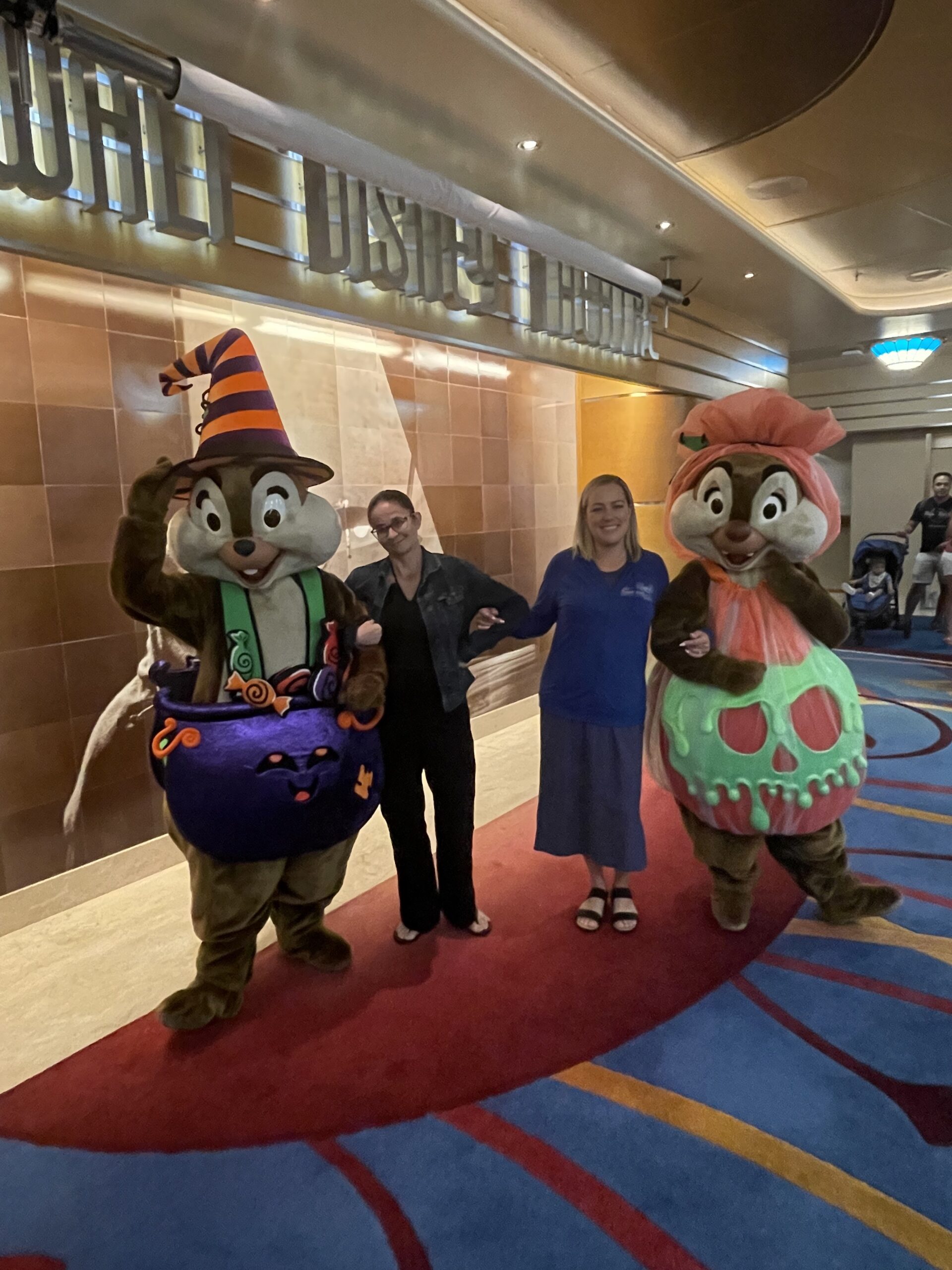 New to 2022 was an additional character to the meet and greet line up. Clarabelle Cow joined Minnie Mouse and Daisy Duck and took the stage as the iconic Sanderson Sisters from Hocus Pocus. There are truly no shortage of characters onboard these ships everyone from Thor and Spiderman to Ariel and Cinderella. There is something for everyone onboard their ships, and during Halloween on the High Seas with Disney, you do not want to miss their adorable costumes. You also do not want to miss a photo op with the enchanted pumpkin tree located in the main atrium of the ships.