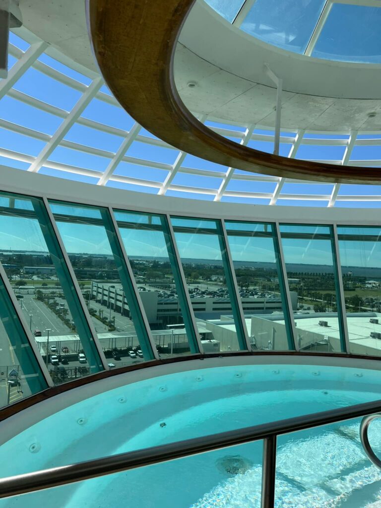 The Solarium is geared specifically for adults. Located on deck 11, guests must be 18 or older to enter the area. This peaceful space features a pool, a bar, and 2 whirlpools that extend 12 feet beyond the sides of the ship. There are plenty of loungers for guests to relax and enjoy the serenity. Conveniently located next to the Vitality Spa and Fitness Center, this would be the perfect space to spend a day at sea!