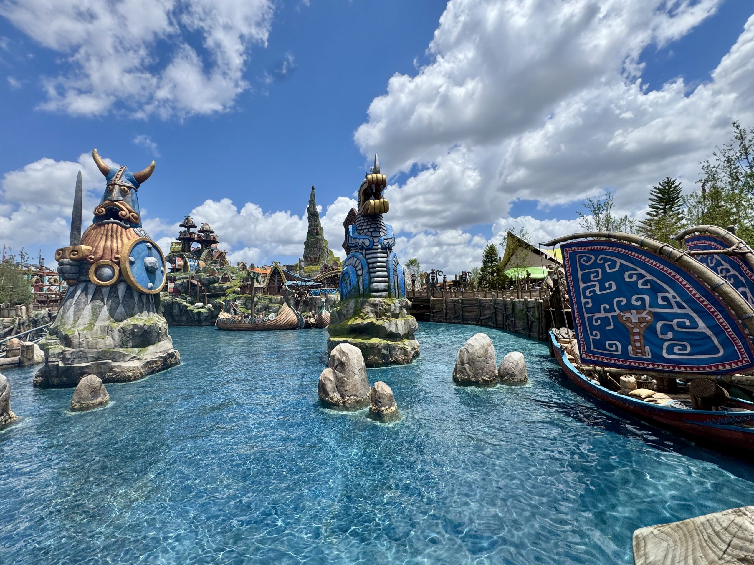 Beyond the stone, the isle BURSTS to life with vibrant colors of beautiful mountains, crisp and inviting waters, artfully crafted ships, benches carved to resemble the beloved dragons, and so much more!