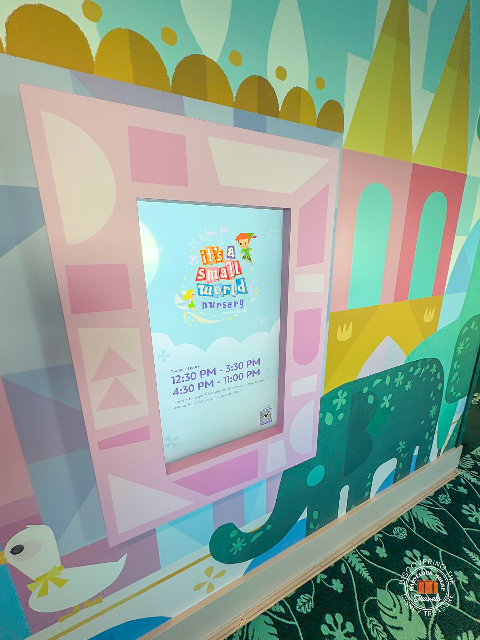 Inspired by the beloved Disney attraction It’s a Small World, the nursery transports young guests to a whimsical world where they are surrounded by cheerful colors, vibrant designs, and the iconic song that celebrates global unity. The nursery is a playful, multicultural space, decorated with charming representations of countries from around the world, featuring adorable touches like giant toy blocks, international landmarks, and friendly characters. It’s as though the magic of the theme park ride has come to life in the most heartwarming way.
