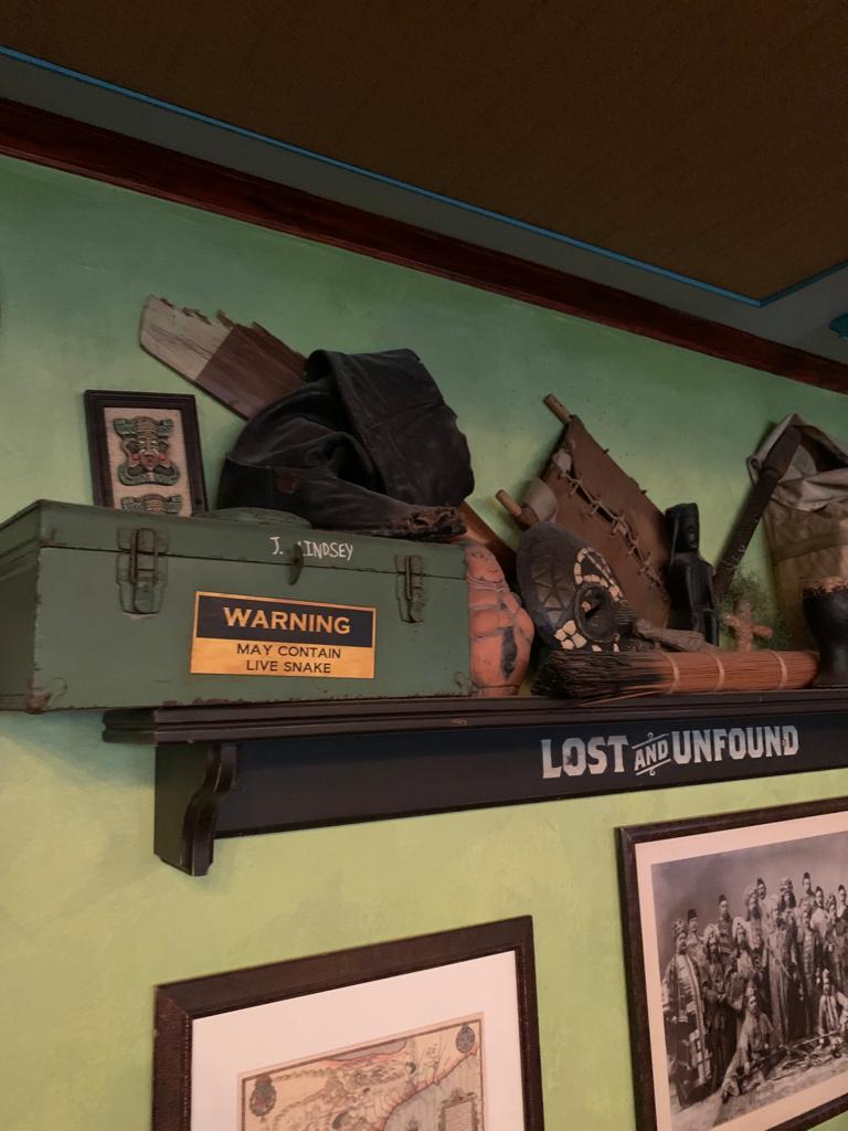 Disney fans will love all of the hidden elements around this restaurant. It is filled with history surrounding the story of The Jungle Cruise, along with nods to so many other parts of Disney such as The Tiki Room, Indiana Jones, Disney Cruise Line, and the founder of the The Jungle Navigation Company himself, Dr. Albert Falls.
