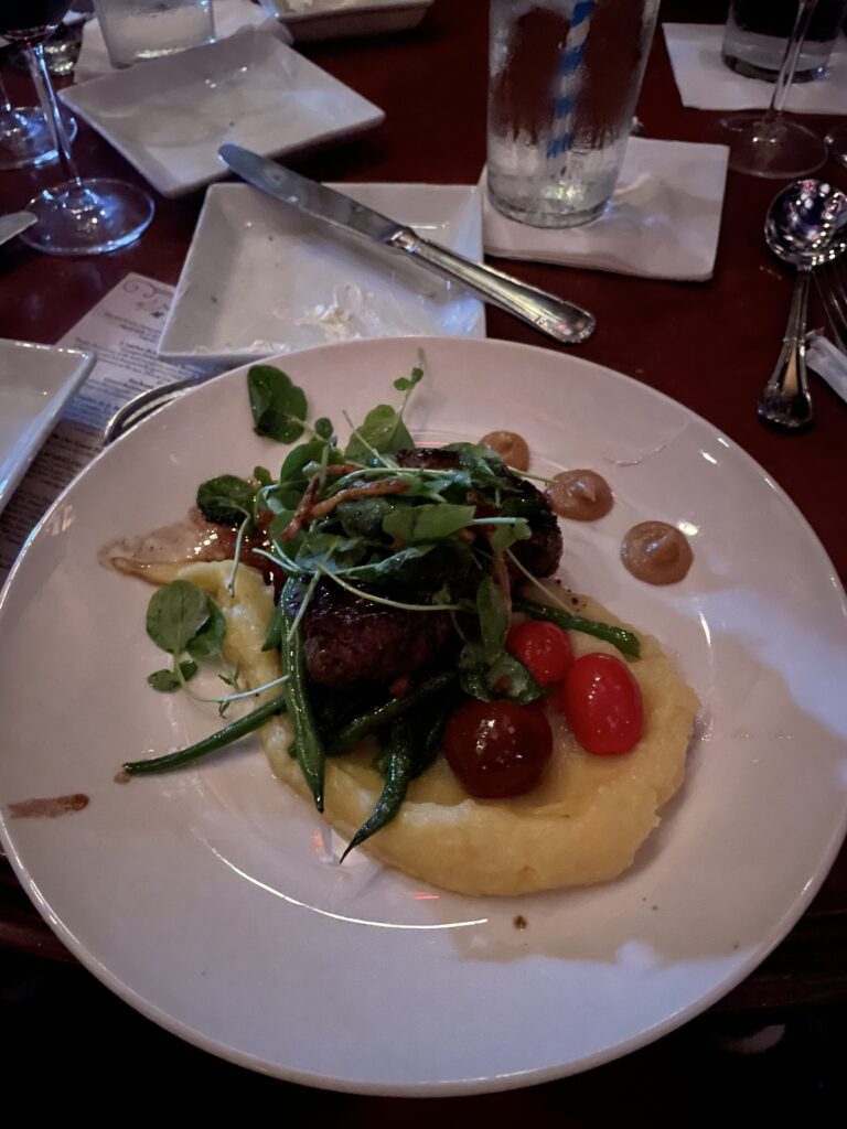 Now since I just brought up food, I might as well dive right into it. You can and probably will eat a ton of food on the cruise. I often find myself pushing through my hunger when I’m at Disneyland or Disney World because my main goal is usually to get on as many rides and take as many pictures as possible. You won’t be hungry when you are on a Disney Cruise! Never before have I eaten so well in such a small amount of time. Each day breakfast consisted of a few cups of coffee (or my Minnie latte), orange juice, a warm croissant, and a wide range of breakfast items (I loved the southern hash). There are fresh eggs available, awesome bacon, sausage and, of course, Mickey waffles! Our first dinner at The Enchanted Garden was outstanding! The second night we ate at the Royal Palace and all I can say is wow! I ordered the Chateaubriand and a glass of wine. For dessert I had a chocolate brownie sundae. The food and the desserts are truly top notch on the Cruise! Whichever vacation option you choose, just know you’ll be able to find amazing high quality food and great quick service options as well.