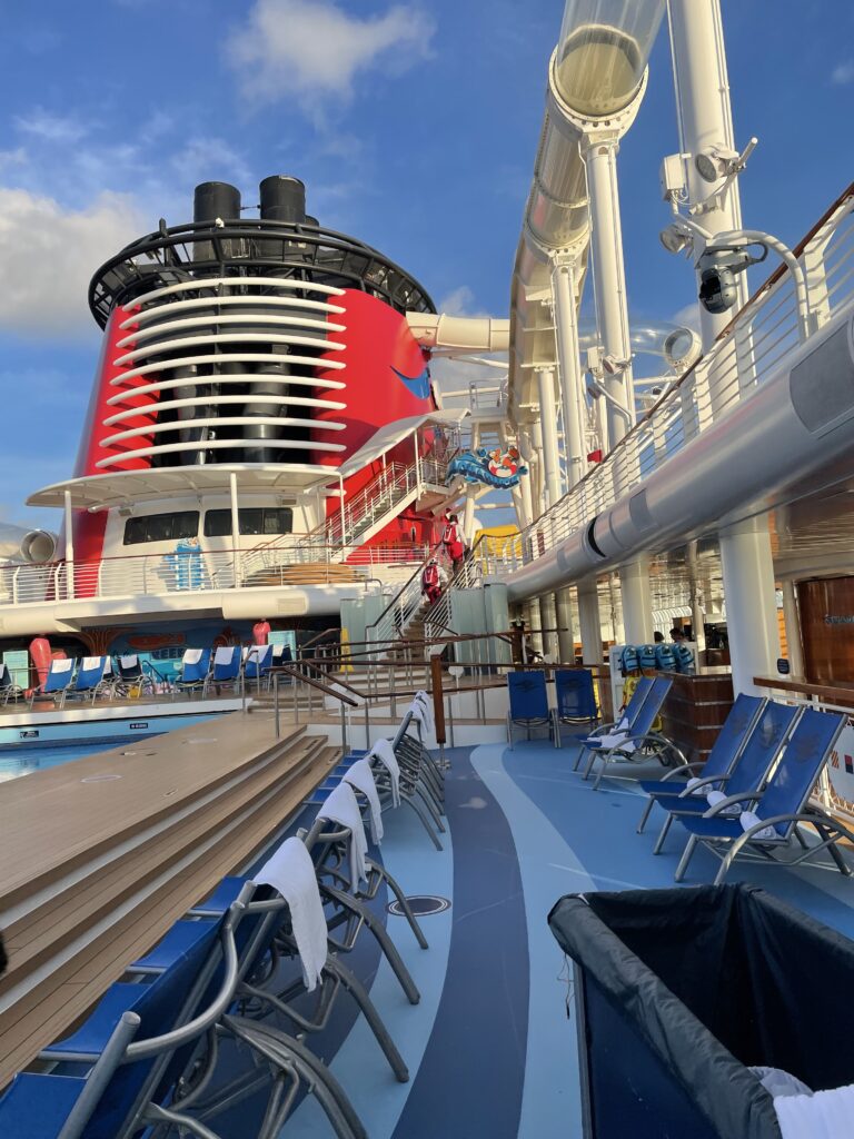 Disney Cruise Line currently assigns travel parties strict port arrival times. This means you need to plan your flights carefully, or consider staying at a hotel near the cruise port on the night before your cruise departs. Once on the ship however, that’s it! Just relax and enjoy! Throughout my time on board the ship, I never waited in line once! Your dinner time and locations are set each night and your servers are assigned to your group throughout the cruise. Shows-times are arranged each night at the opposite time of your dinners. They are convenient to get to (no running across a park to try and get a good seat), but still make sure to get to the theater early. Due to social distancing requirements, space can be limited. Additionally, you can choose to eat at the quick service restaurants like Cabanas, Flo’s Cafe, Eye Scream Treats, or even order room service. This was great and there is no mobile ordering required or time frames required.